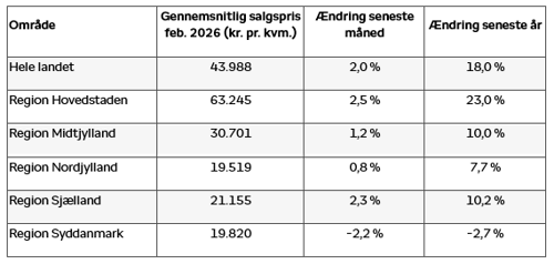 Ser vi på udviklingen over et helt år, ligger priserne nu 18 procent højere end februar sidste år – en markant vækst, som kun underbygger den stærke efterspørgsel.