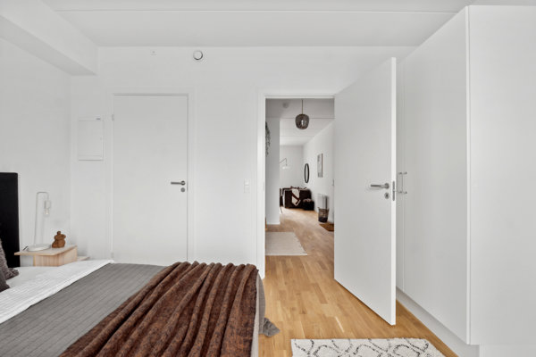 I boligen finder du to rummelige værelser med indbygget skabe, dertil har det ene værelse også udgang til tagterrassen.