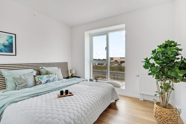 Alt i alt en velindrettet lejlighed med fokus på komfort, funktionalitet og ved den høje placering også giver et dejligt lysindfald.