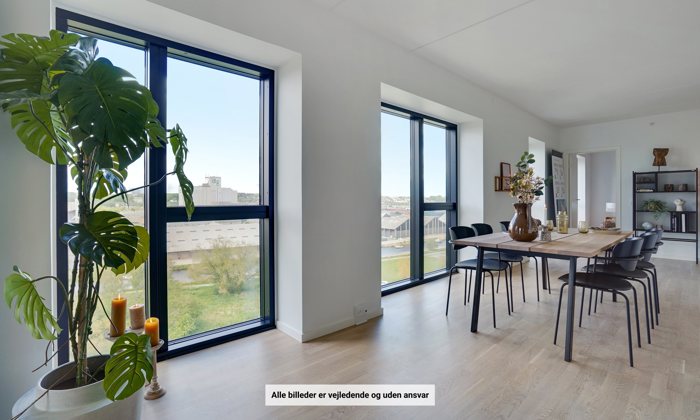 Hele lejligheden er indrettet med gulvvarme, store flotte vinduespartier og er generelt åbent og lyst.