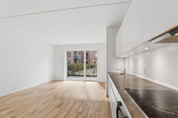 Leverum i lys og luftHjertet i boligen er det imponerende opholdsmiljø, hvor køkken-alrum og stue smelter sammen i en harmonisk symfoni af lys og rummelighed. De store vinduespartier og den generøse loftshøjde sikrer et fænomenalt lysindfald fra flere verdenshjørner, mens det funktionelle og stilrene køkken indbyder til både gastronomiske udfoldelser og socialt samvær. Fra alrummet træder man direkte ud på lejlighedens altan, der fungerer som en naturlig forlængelse af boligen og tilfører en herlig følelse af frihed.