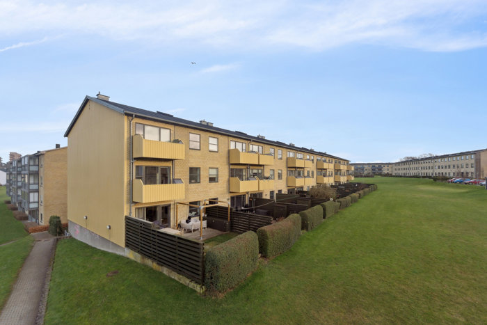 I den indbydende stue er der plads til både sofaarrangement og spisebord. Herfra er der direkte udgang til en skøn altan, hvor du kan nyde solen, en kop kaffe eller blot udsigten over området.