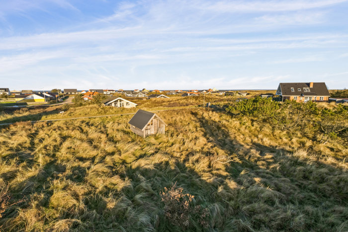 På denne ca. 900 kvm store grund i naturskønne Lild Strand, bor du kun 350 meter fra Vesterhavet. Her får du en sjælden kombination af havkig, fredet hede, klitlandskab og autentisk kystmiljø. Mulighed for både helårsbeboelse og fritidshus – helt uden bopælspligt.