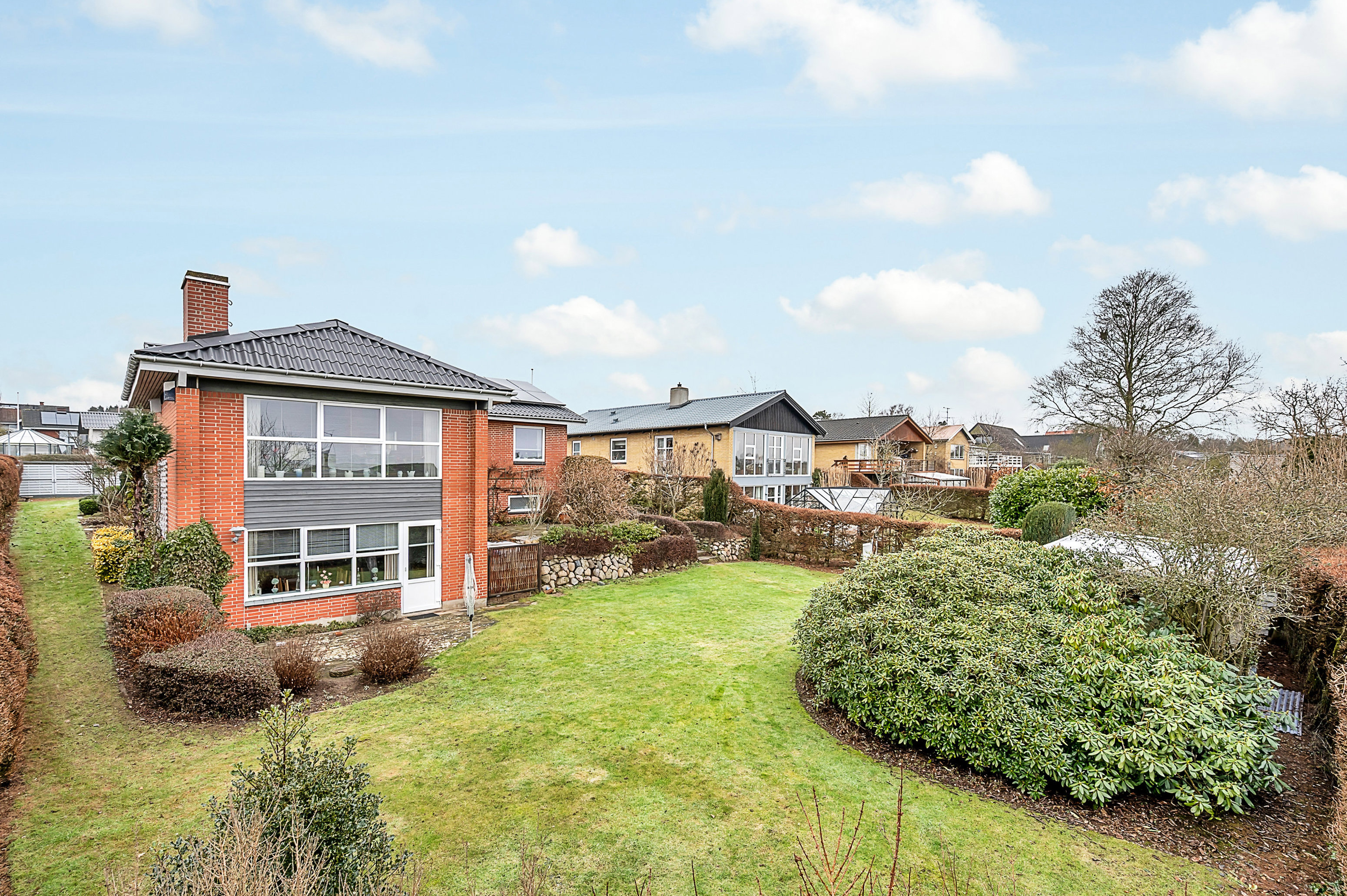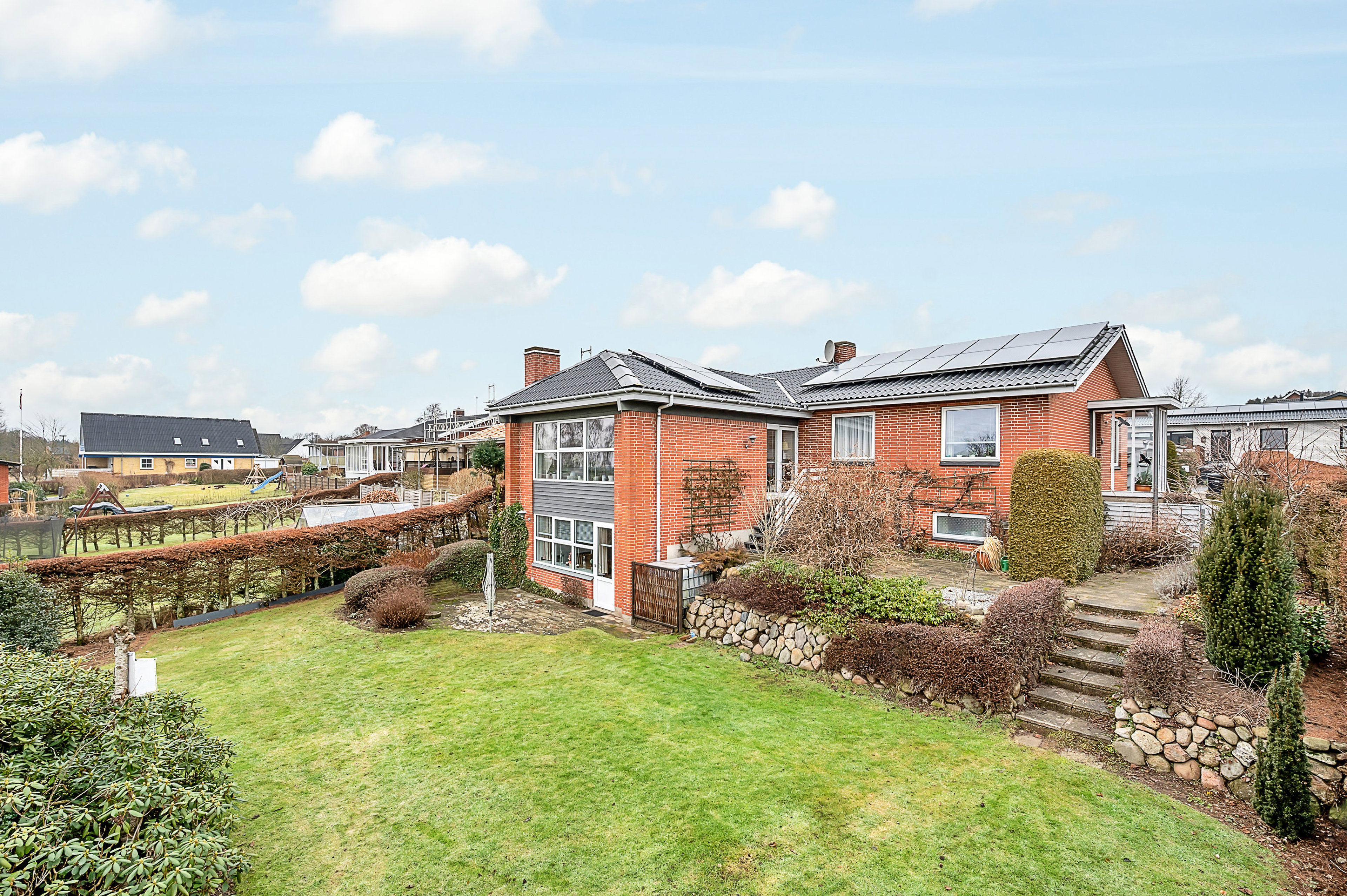 Grunden på 828 m² rummer en skøn, sydvendt baghave, hvor solen kan nydes dagen lang, samt en lukket forhave – ideelt til både afslapning og hyggelige stunder.