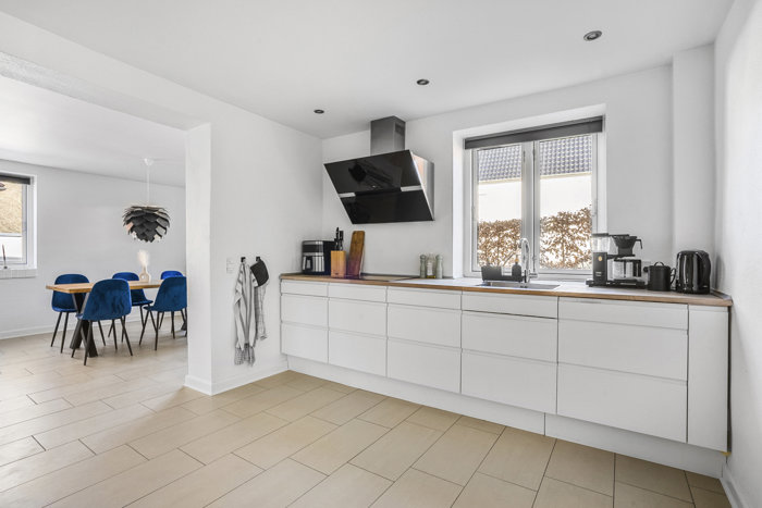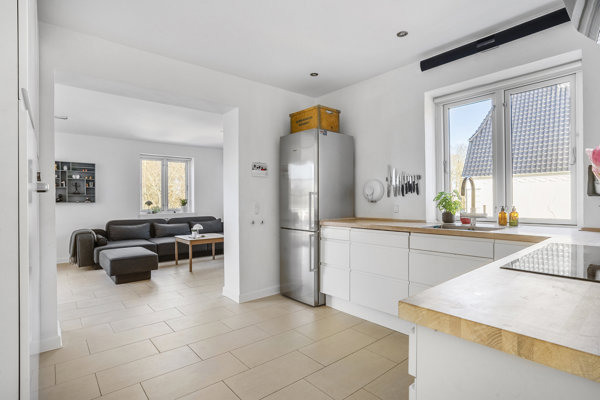 - Moderne indretning med store, regulære rum uden skråvægge på 1. sal