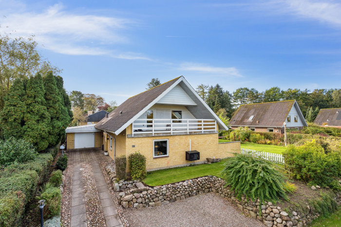 Udenfor møder I en dejlig have med masser af køn, varieret beplantning og en græsplæne, der er selvskrevet til børnenes leg. På den sydøstvendte terrasse nyder I dertil rolige stunder i mange timers solskin. Til huset hører der også en garage med oplader til elbilen, og grundens brønd blev skiftet i 2025.