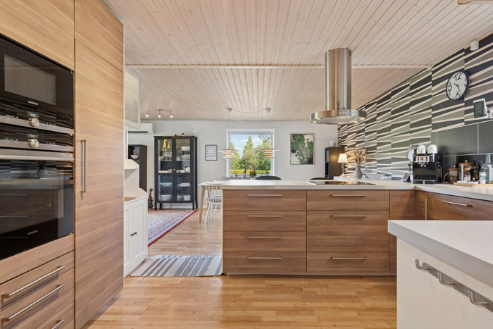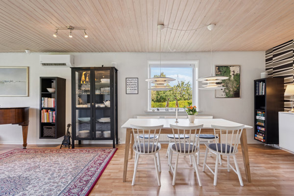 Husets hjerte er det lyse køkken-alrum med Ikea-elementer fra 2015, der smelter naturligt sammen med stuen. Her bliver det en smal sag at invitere til familiefester og livets store begivenheder. Med direkte udgang til terrassen forlænges opholdsmiljøet nemt, så I hurtigt kan rykke samværet ud under åben himmel i sommerhalvåret.