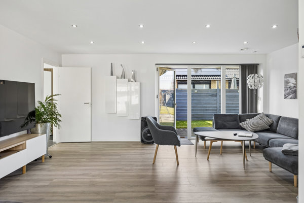 På jeres vej gennem huset finder I bl.a. to badeværelser og hele fire værelser, hvoraf det ene fuldendes af både walk-in og egen terrassedør. Her kan I oplagt indrette en forældreafdeling, men I kan også rykke forældresoveværelset ned i husets modsatte ende og dermed få en separat børneafdeling med tre værelser. Dertil kommer et praktisk bryggers, og til slut bindes hjemmet sammen af et moderne leverum, der forener stue, køkken og alrum. Rummet prydes af et skønt lysindfald, og terrassedøre åbner op til haven på begge sider af huset. Som en ekstra luksus har huset central støvsuger, for at gøre de praktiske forhold mere overskuelige. Dertil har huset solceller som bidrager til at holde lave udgifter.