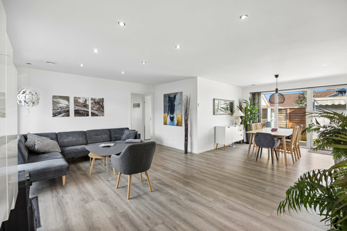 I bydes velkommen hjem af en flot villa opført i lyse mursten. Huset er fra 2019, så I får et hjem med indbygget komfort og minimal vedligeholdelse, og I kan flytte direkte ind. Boligen råder over 147 kvadratmeter i ét velindrettet plan, der folder sig ud med gennemgående gulvvarme, stilrent interiør og en familievenlig planløsning.