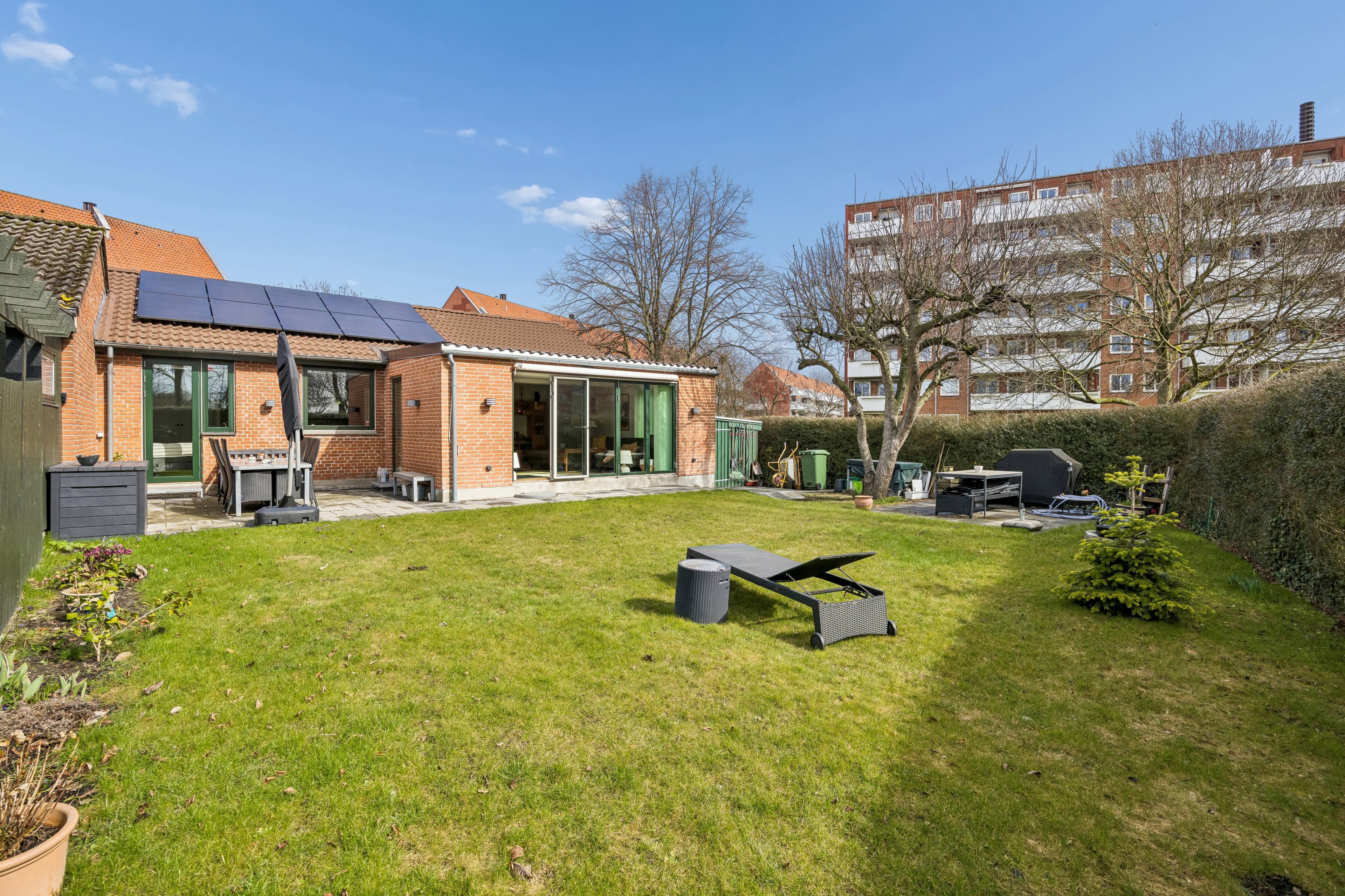 Udendørs venter en skøn, sydvendt have med gode solforhold dagen igennem. Her er plads til både afslapning, leg og hyggelige stunder på terrassen – og med direkte adgang fra opholdsrummet bliver haven en naturlig forlængelse af boligen. Der er lavet nyt skur, samt cykelskur og med overdækket carport og plads til hele 3 biler. Derudover er der allerede etableret fjernvarme og solceller som bidrager til at energivenligt hus med lave udgifter. Bedre rammer får du ikke!