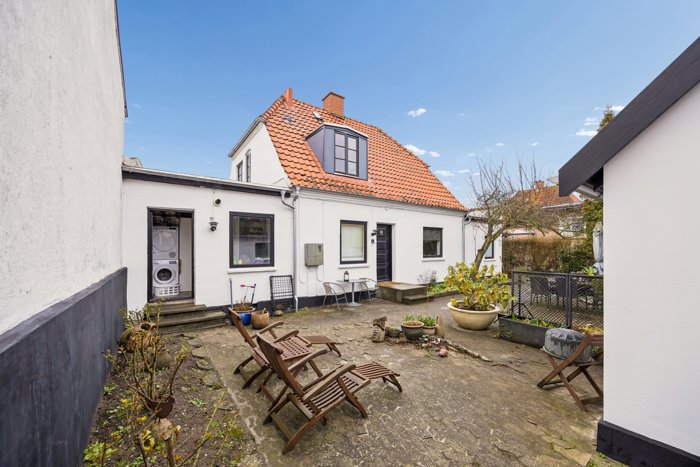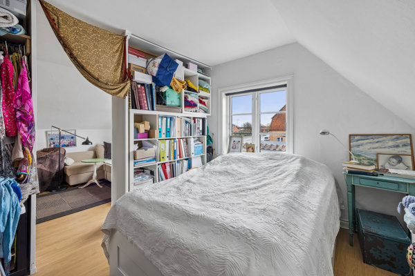 Langs vejen er der plads til bilerne, og herfra kan I tage turen gennem havelågen og ind i den skønne, lukkede gårdhave med flere hyggelige opholdszoner. Sol, læ eller skygge – der er noget for enhver smag, og fortsætter I videre ud, åbner den ugenerede have sig med god plads til boldspil, leg og afslapning i grønne omgivelser. Det tilhørende anneks giver ekstra fleksibilitet til det allerede rummelige hus, for med eget bad og køkken i begge dets afdelinger – og tilmed hems i det ene – kan der indrettes en teenageoase, en gæsteafdeling eller måske et dejligt multirum, som samler store og små.