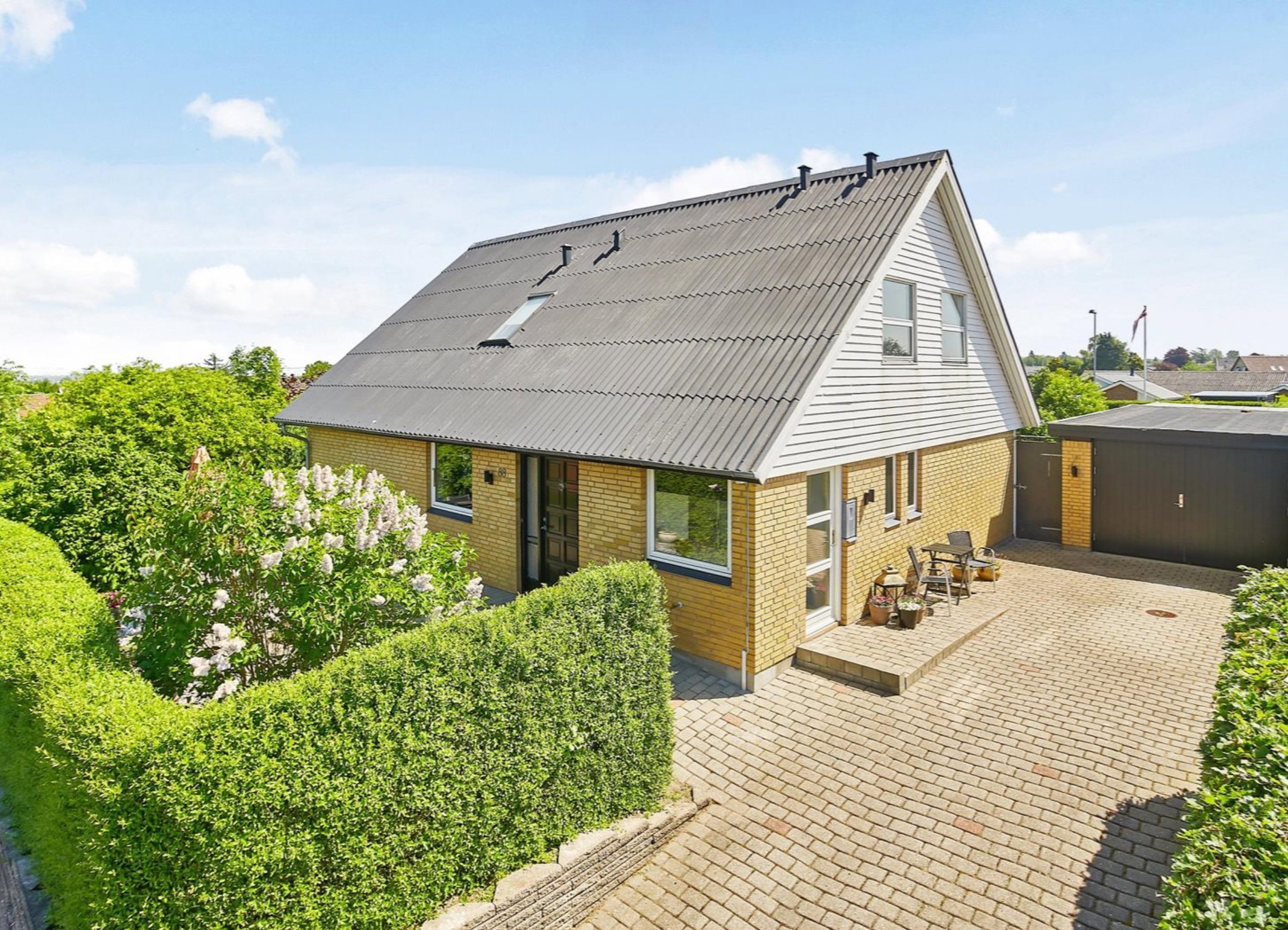 Til ejendommen hører en 30 m² muret garage med værksted. Haven er velplejet, nem at holde og byder på flere skønne terrassemiljøer, hvor solen kan nydes dagen lang – perfekt til både hverdagens små pauser og sommerens hyggelige sammenkomster.