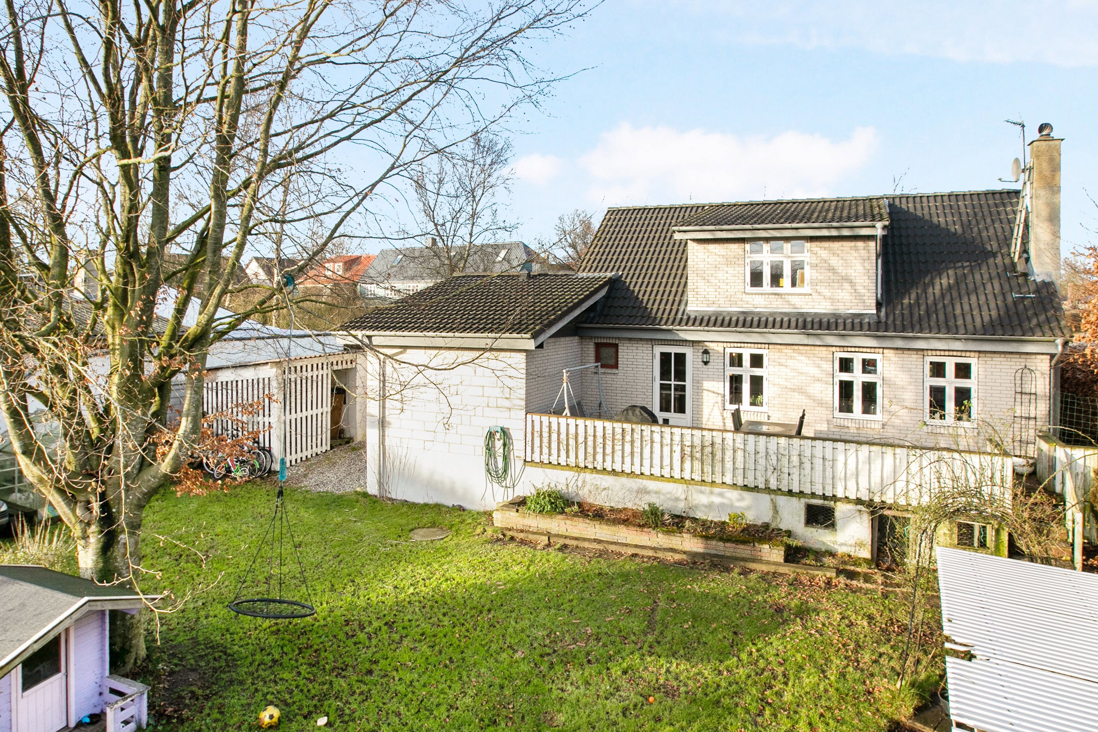 Huset ligger godt tilbagetrukket fra vejen, og fra adressen er der få skridt til både børnehave og sport- og fritids aktiviteter.