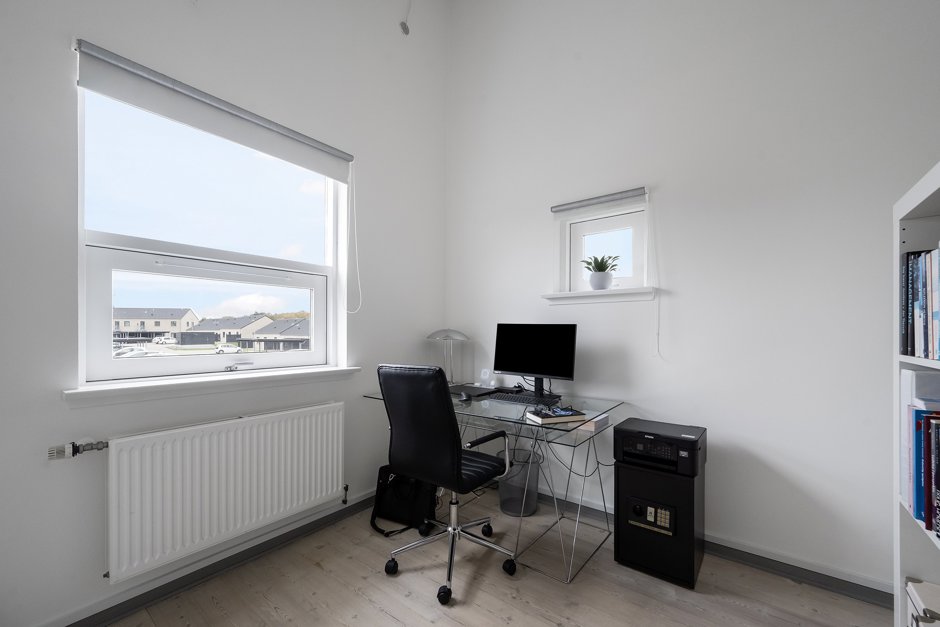 Fra stuen på førstesalen får man en virkelig flot havudsigt over Lillebælt – en udsigt som skifter karakter gennem dagen og årets gang, og som man hurtigt vil sætte stor pris på i hverdagen. Uden for huset finder du også både en dejlig terrasse og en altan, hvor udsigten ligeledes kan nydes.