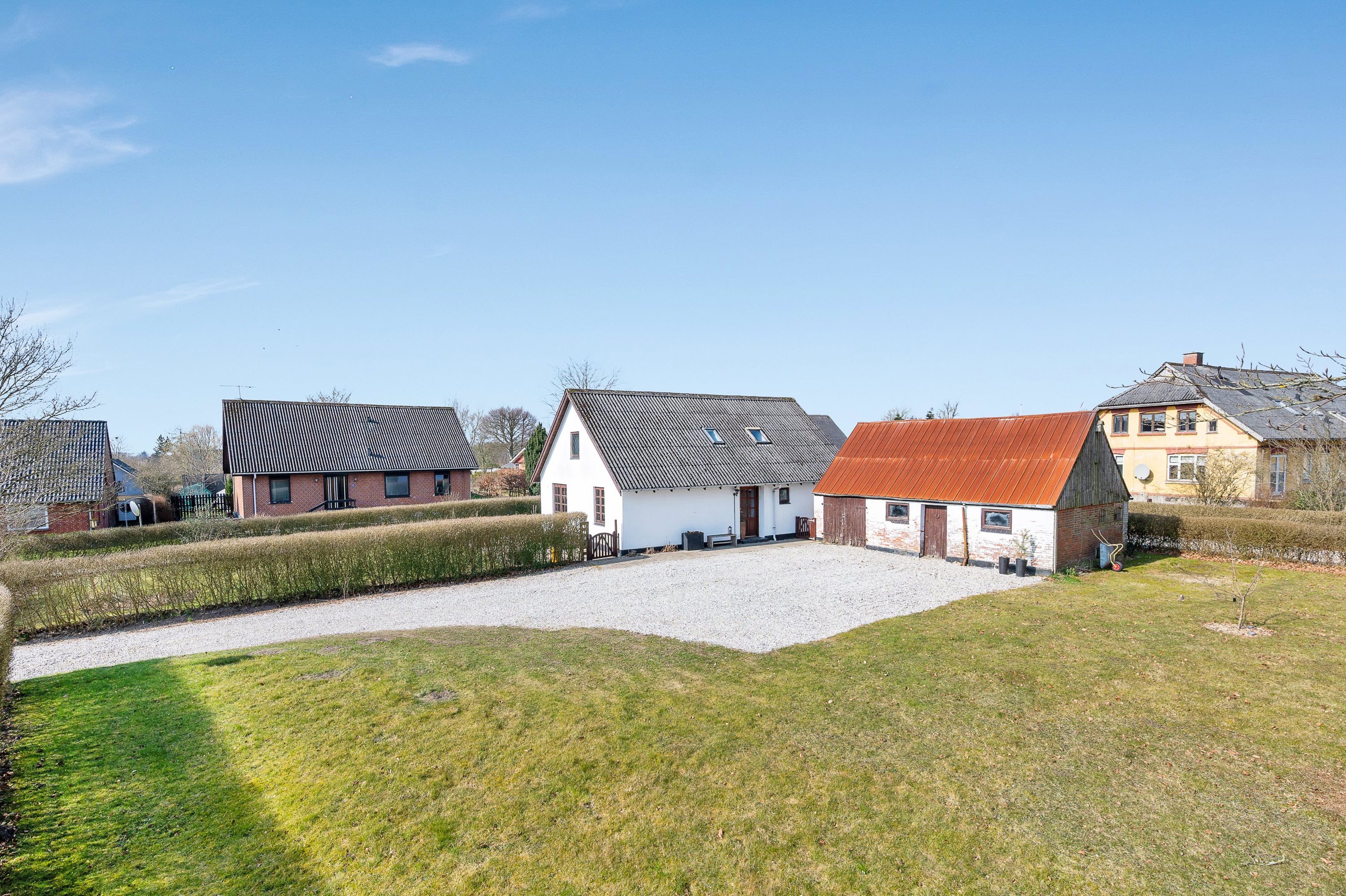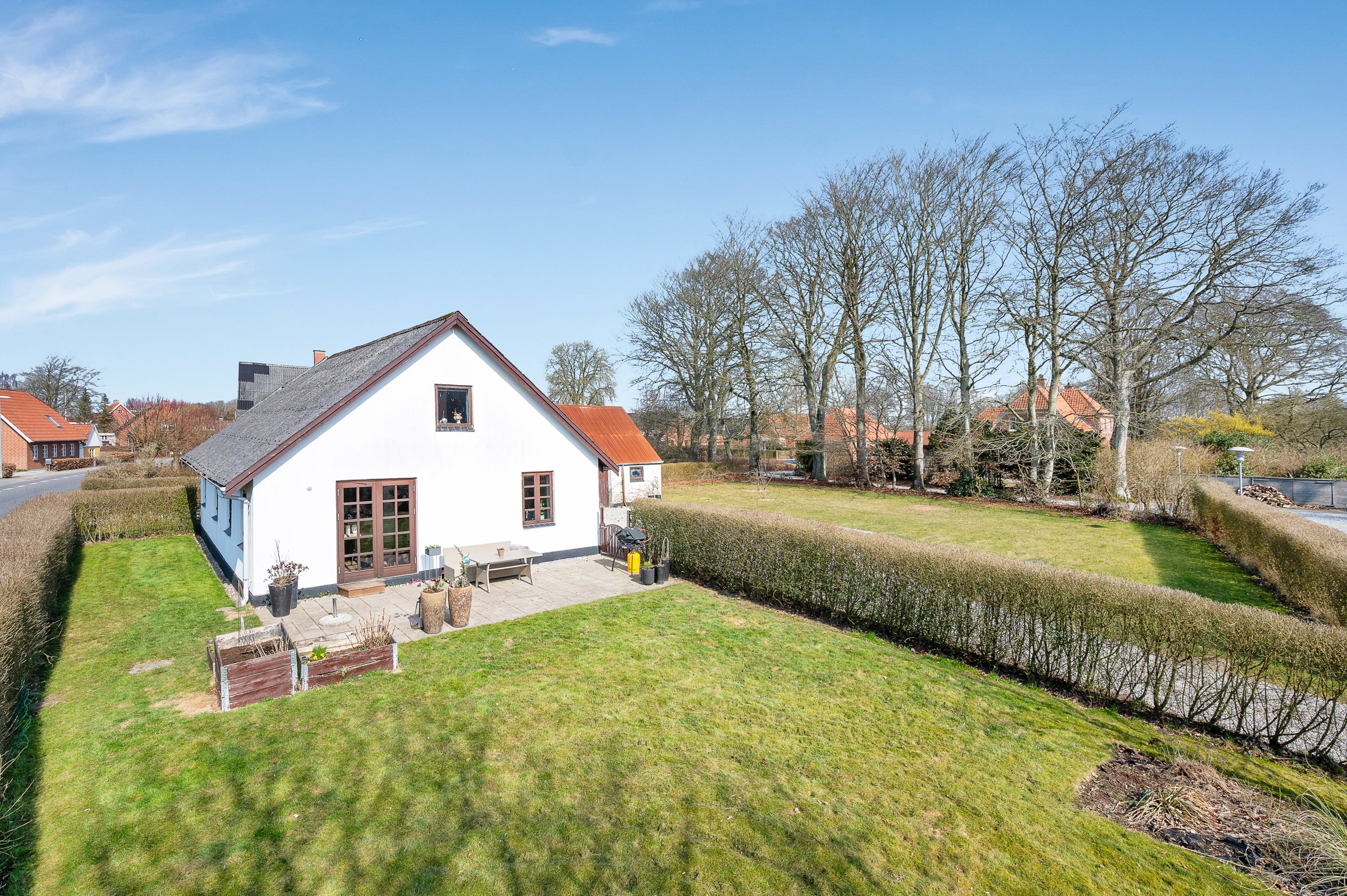 Ejendommen er beliggende på en skøn grund på 1.070 m² med en solrig, sydvendt have, der indbyder til afslapning og udeliv. Haven grænser op til den lokale kirke og skaber en helt særlig, rolig og stemningsfuld atmosfære – perfekt til både hverdag og gæstebesøg.