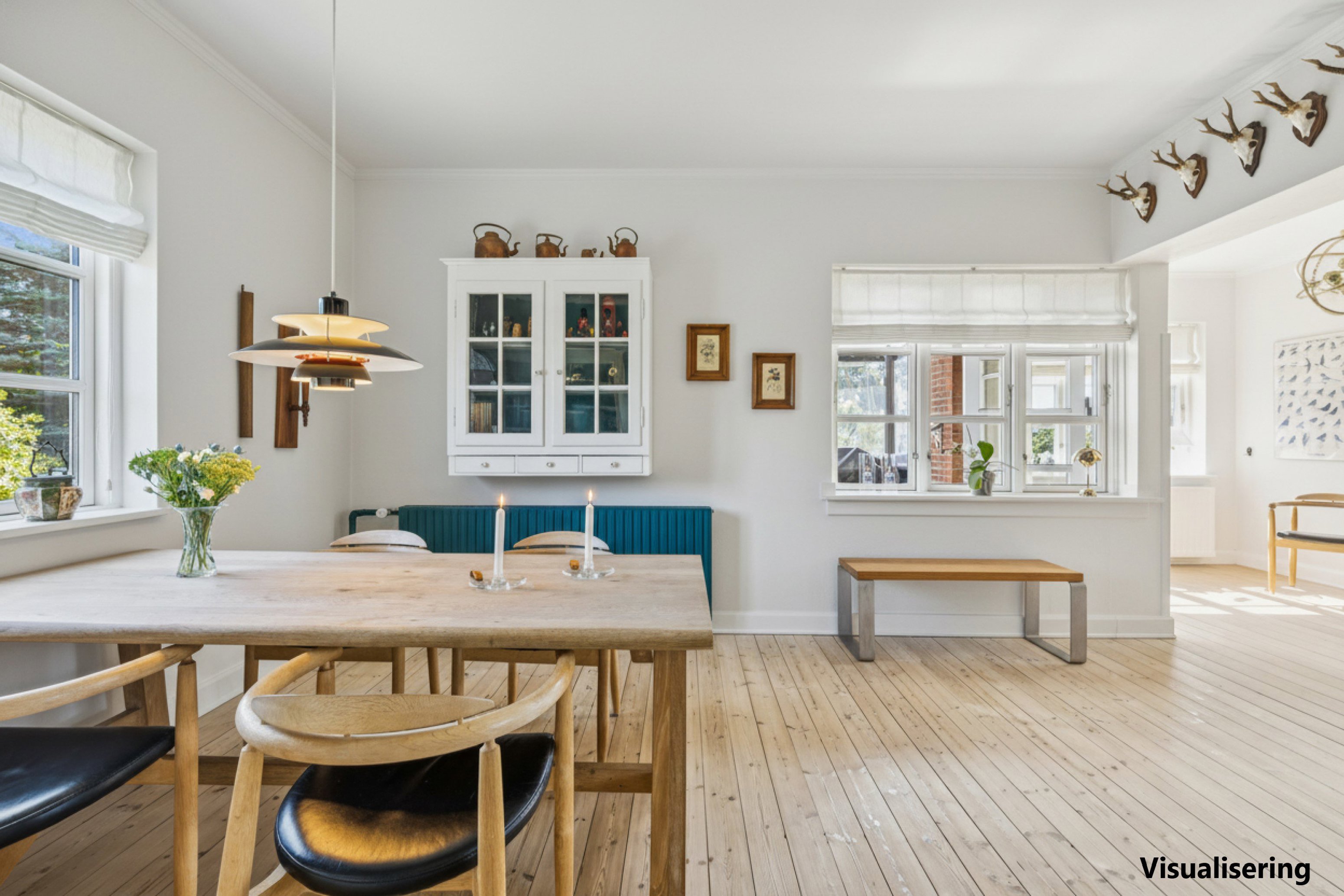 På første sal venter fire værelser, hvoraf det ene fungerer som gennemgangsrum. Det giver mulighed for at skabe en praktisk indretning med både børneværelser, kontor og gæsteværelse alt efter behov. Heroppe finder du også et rummeligt walk-in, som kan bruges som garderobe eller til opbevaring.