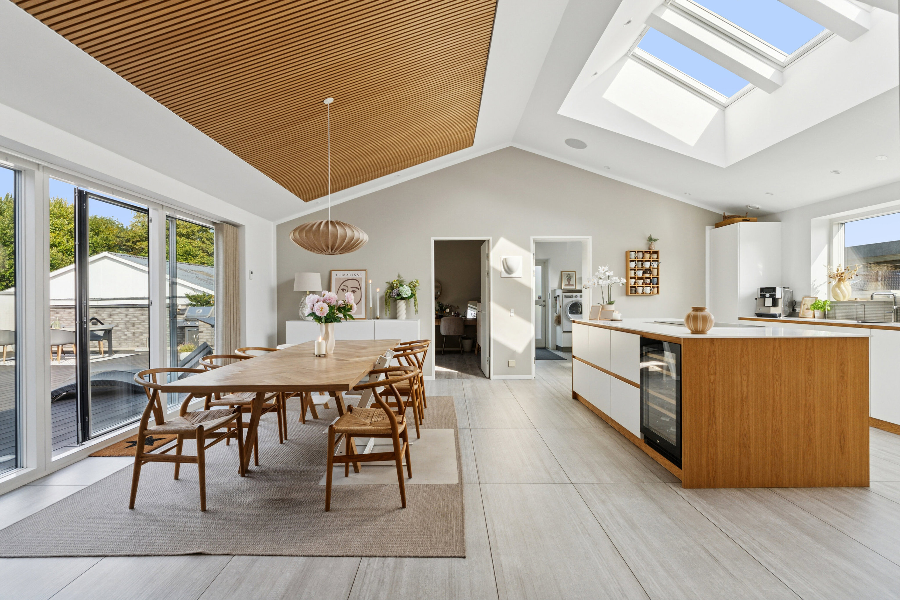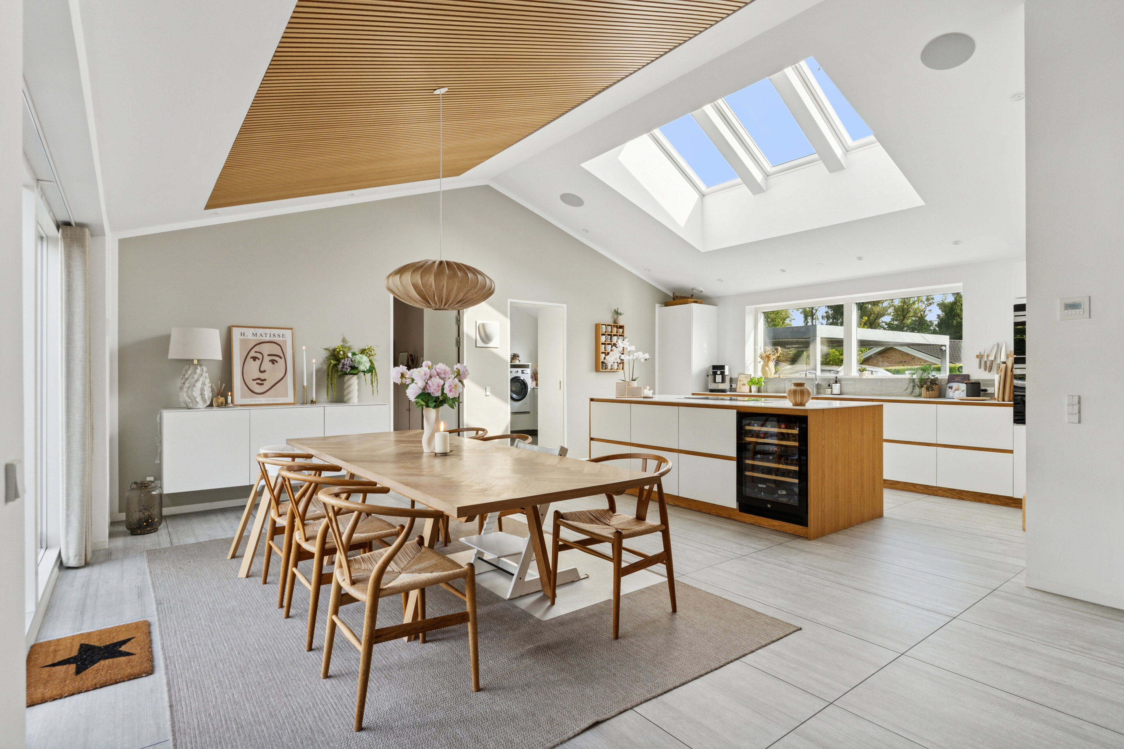 Her overtager I nøglerne til en bolig fra 2015, som byder på 215 m2 fordelt over ét plan med gulvvarme alle steder samt gennemførte løsninger, fantastiske lysindfald og kipført loft i flere af rummene.