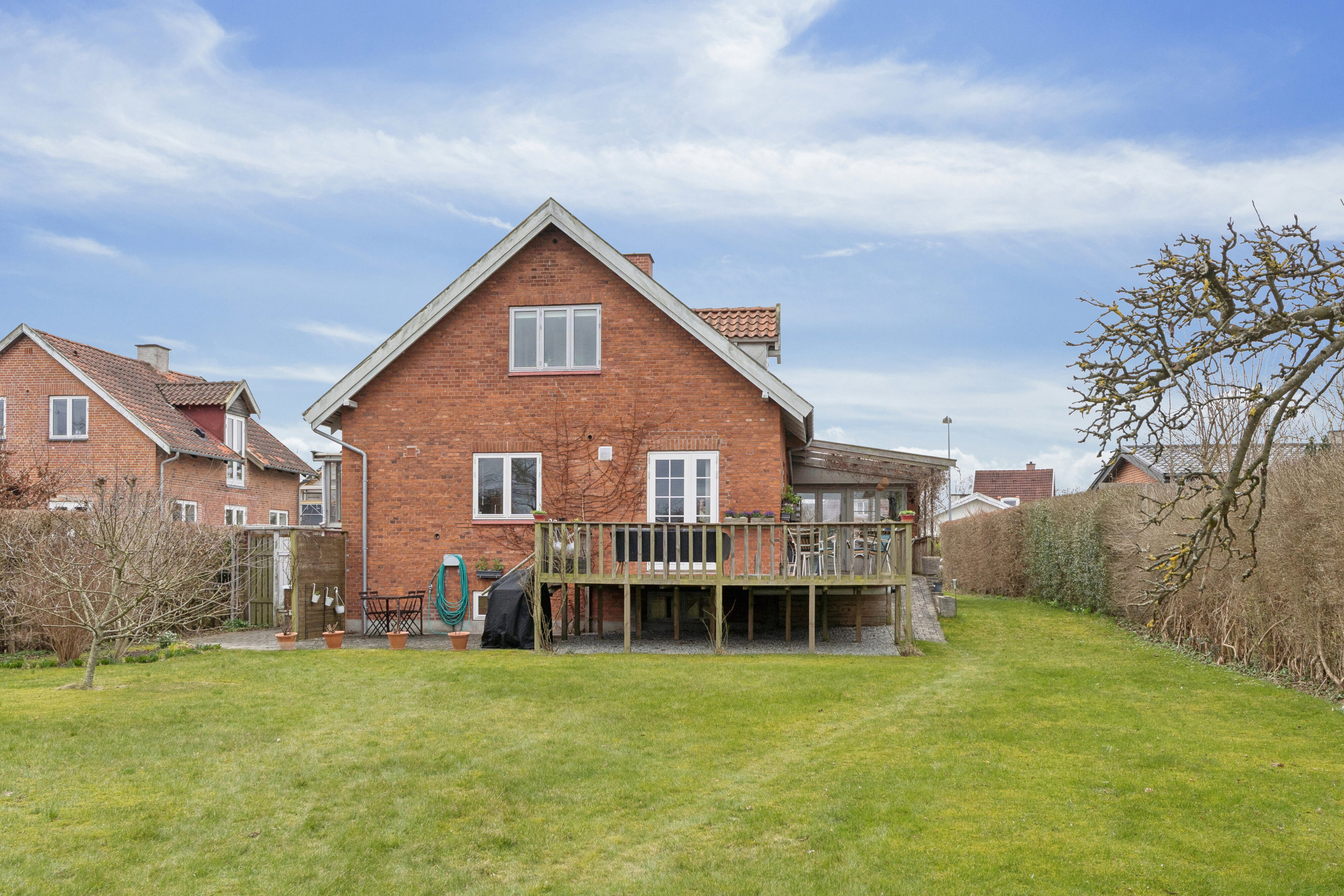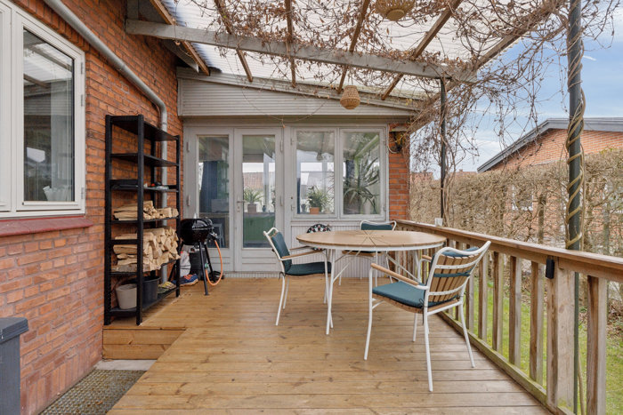 Haven: Bondemarken 9 byder på en velanlagt og indbydende have, der er opdelt i en funktionel forhave og en skøn, rummelig baghave. Forhaven er praktisk indrettet med indkørsel og carport samt adgang til boligen. Herudover findes en hyggelig græsplæne, et drivhus og pæn, velholdt beplantning, som tilsammen skaber et imødekommende førstehåndsindtryk. Baghaven er et kapitel for sig og fremstår særdeles indbydende med masser af plads og en god, regulær udformning. Her er der rig mulighed for både leg, afslapning og udeliv. Haven rummer en stor terrasse, et anvendeligt bindingsværksskur samt flere frugttræer, der bidrager til den hyggelige atmosfære. Derudover er der gode muligheder for at etablere køkkenhave eller andre grønne projekter. Samlet set en dejlig have, der kombinerer funktionalitet med gode opholds- og udfoldelsesmuligheder.