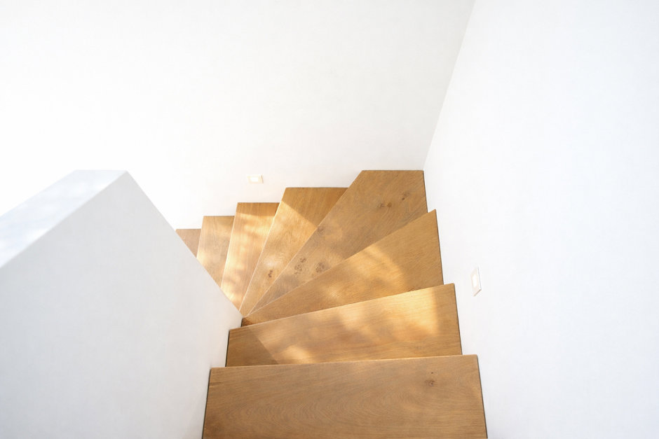 Materialevalget er gennemført i absolut topklasse. Gulvene er brede HeartOak-planker fra Dinesen – samme type som blandt andet findes på Noma. Dinesen-træet går igen i trappe, specialdetaljer og terrasse, mens hoved- og skydedøre er udført i massiv eg af VAHLE.