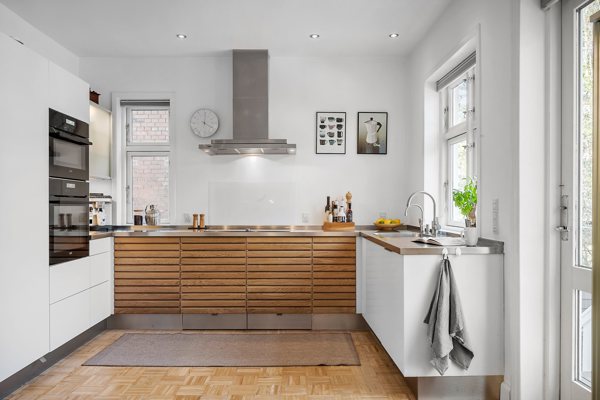 Det lyse og indbydende køkken-alrum er husets hjerte med flot lysindfald, smukke gulve og udgang til den hyggelige, lukkede gårdhave, hvor sommerens aftener kan nydes i fulde drag. Her er der god plads til både madlavning, samvær og afslapning. Køkken-alrummet har en smuk åbning til opholdsstuen, hvilket skaber en dejlig sammenhæng i boligen. De flotte gulve i stueetagen giver et smukt look og en god atmosfære.