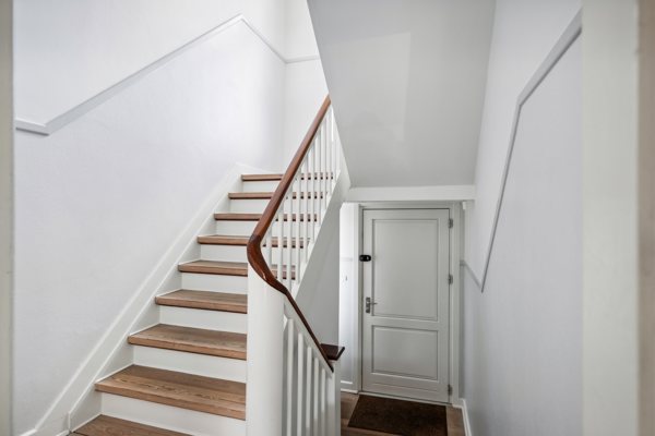 På første sal finder du en dejlig moderne 4-værelses lejlighed på 100 kvm. Den rummer en lys og