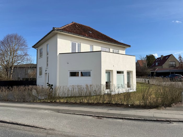 Funkisvillaen har en fremtrædende placering på hjørnet af Balagervej og Christian X`s vej. Denne