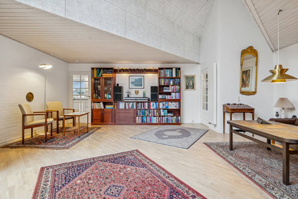 Planløsningen består i gæsteentré med plads til garderobe og adgang til husets ene af i alt to badeværelser; begge med bruseniche, toilet samt vask. Separat rigtig fint køkken-/spiserum med godt køkken i lyse elementer og udgang til terrasse/have. Fantastisk stue med højt til loftet og pragtfuld lysindfald fra de store vinduespartier. Masser af plads til spiseafsnit med mange gæster, sofaafdeling og kontor - og også her fra udgang til haven samt terrasse. En separat stue mere - som også kunne være et værelse. Har er dermed muligheder for fire værelser i alt. Til sidst: separat bryggers med vaskefaciliteter og opmagasineringsplads.