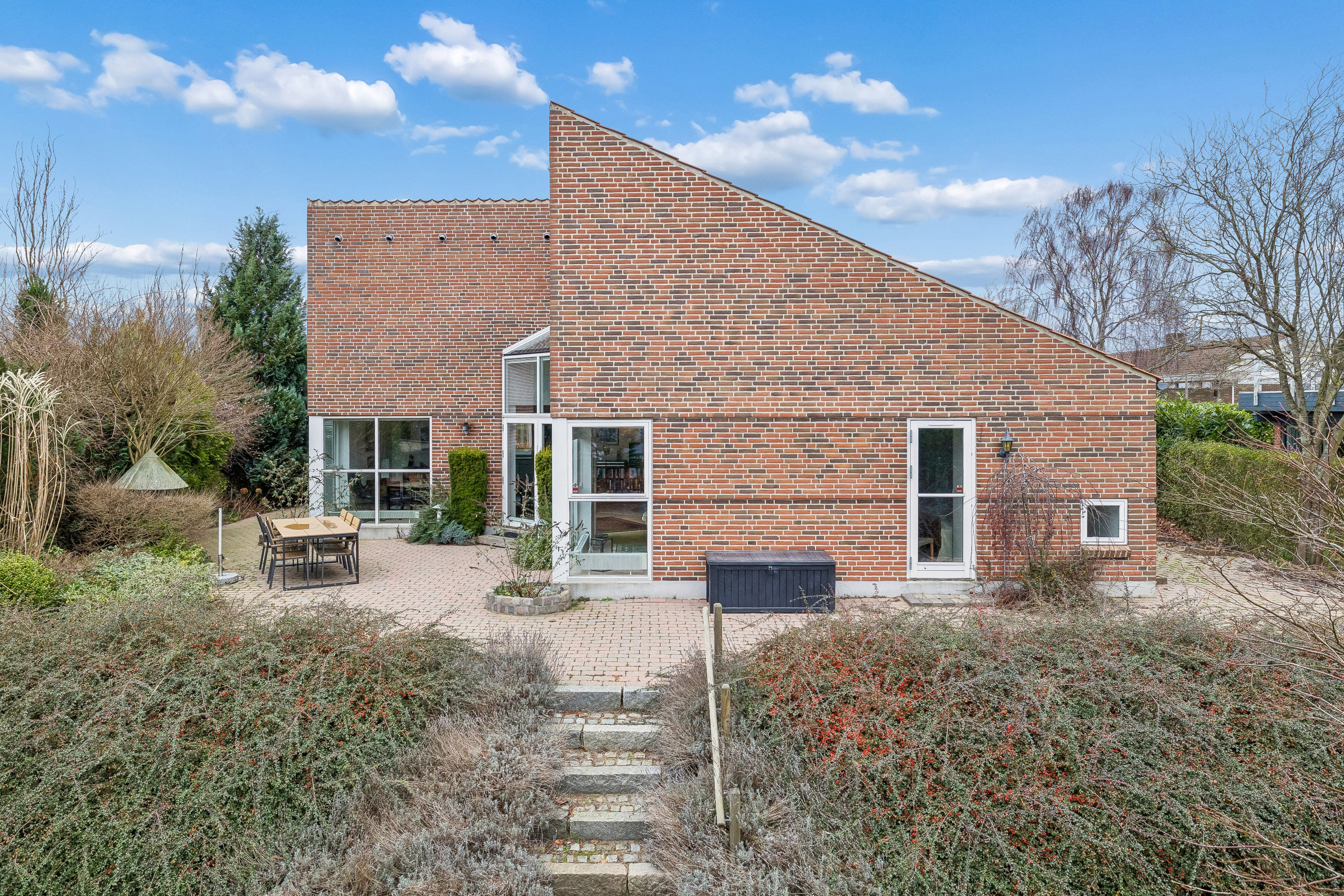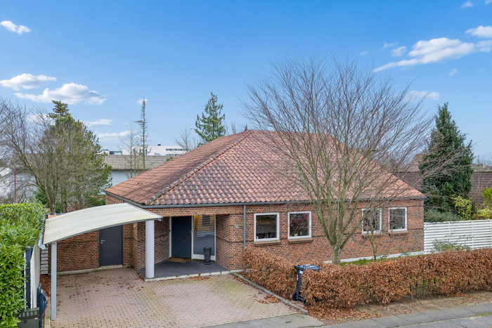 home har nu fornøjelsen at byde velkommen til denne arkitektonisk spændende étplans villa i gedigne materialer fra år 1989 i det efterspurgte Kalenderkvarteret.