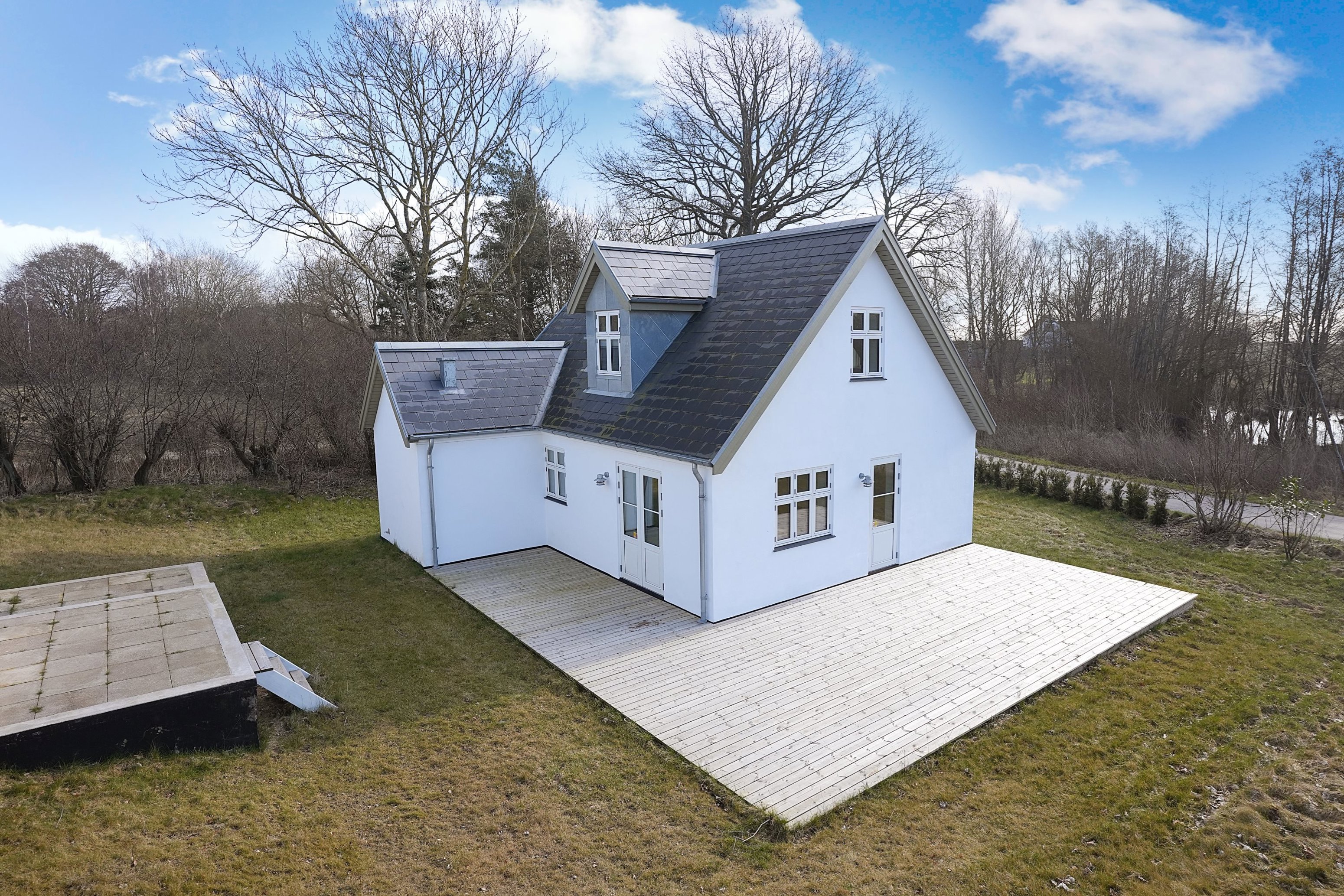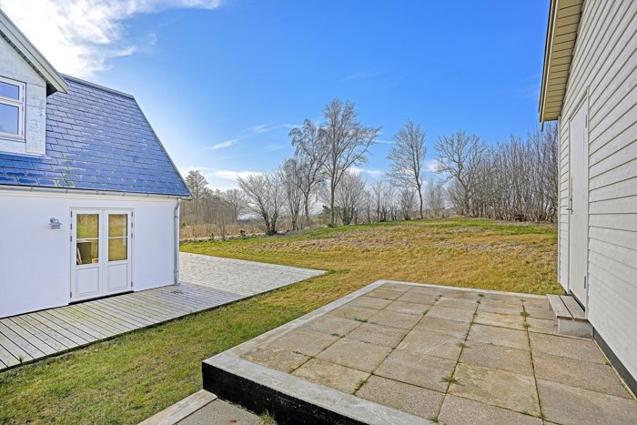 Udendørs venter en stor, solrig træterrasse, der omkranser både huset og det flotte, rummelige udhus. Udhuset giver masser af anvendelsesmuligheder – måske som gæstehus, atelier eller hobbyrum?