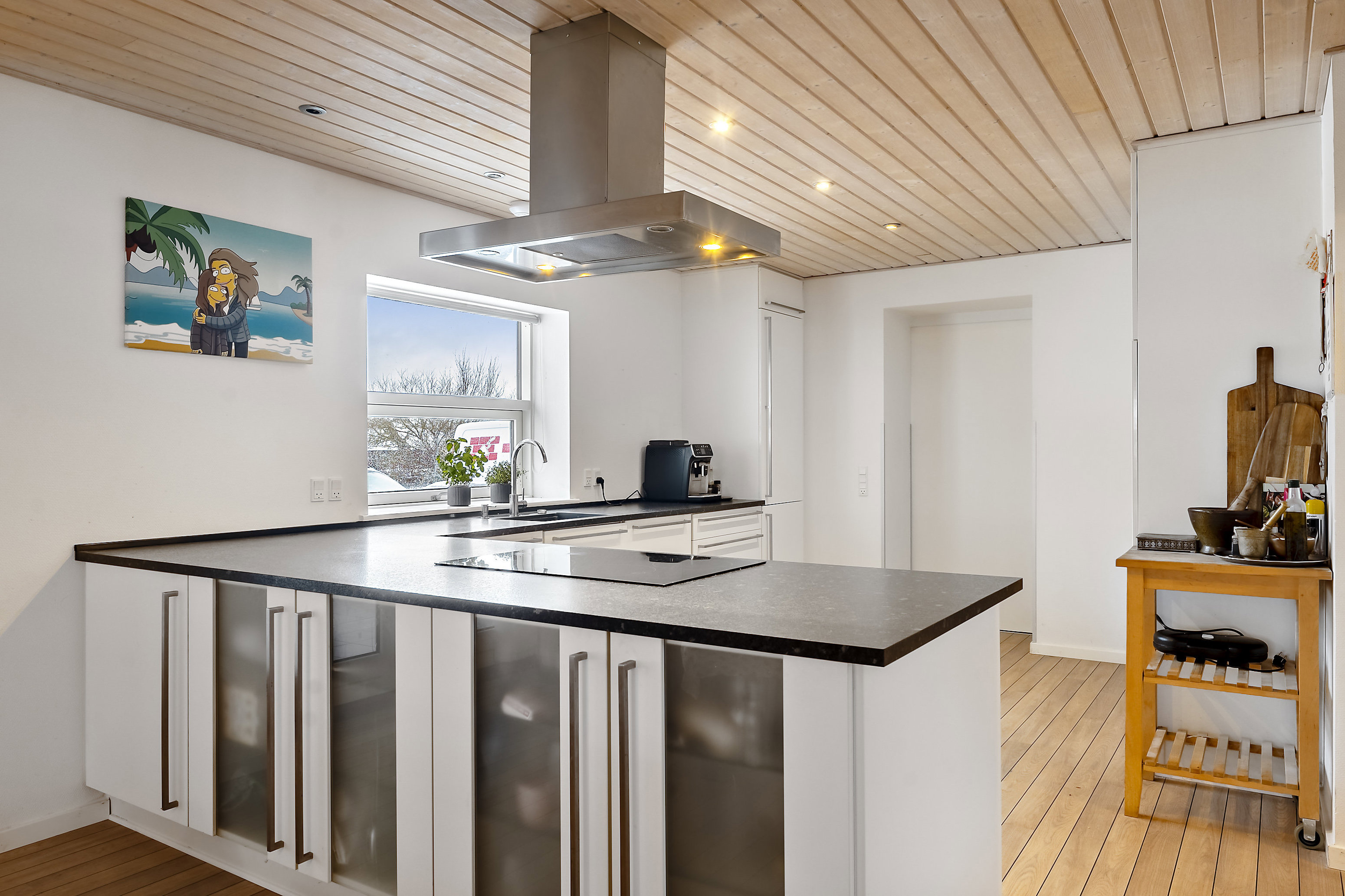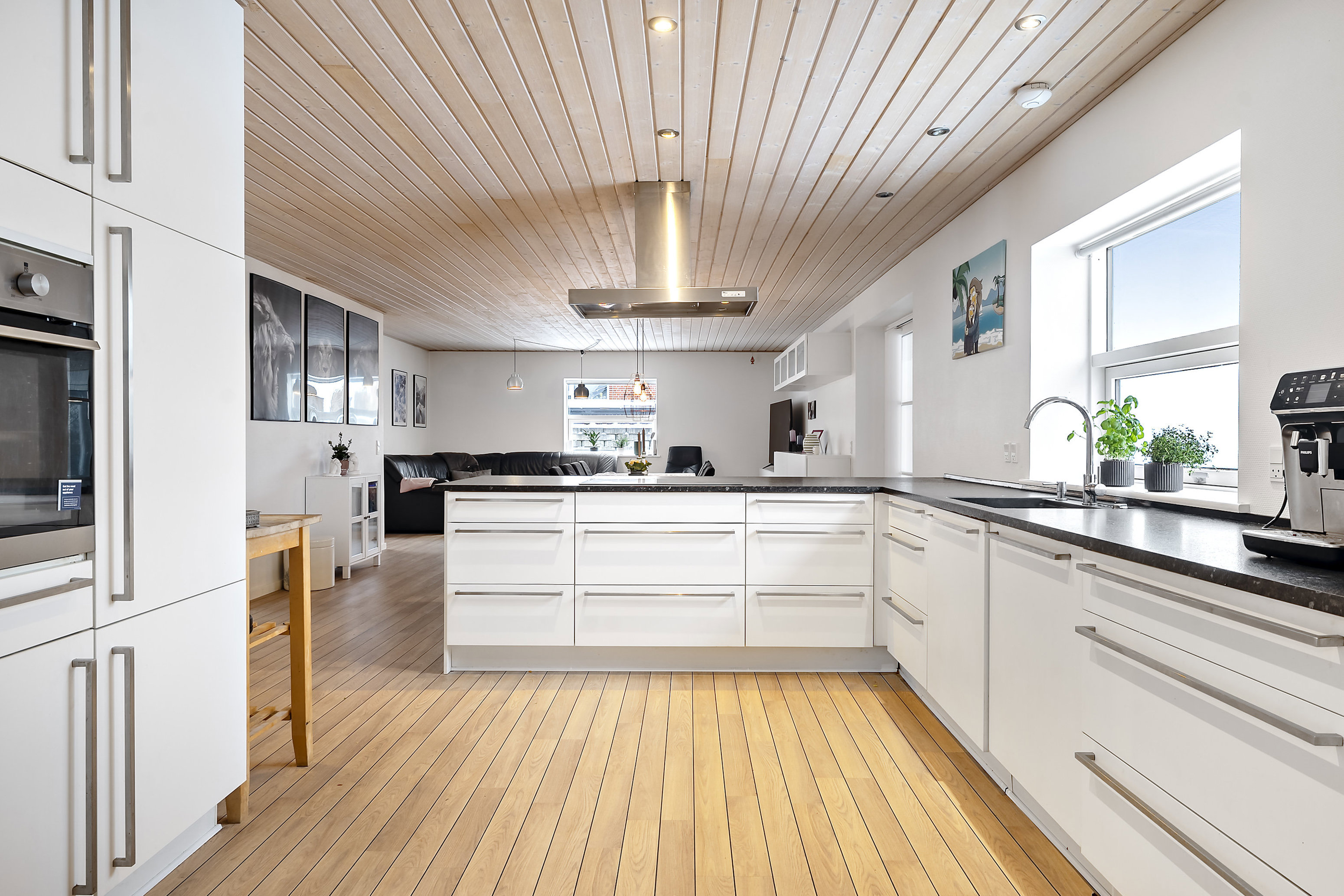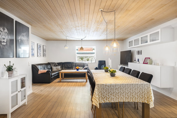 Fra spisestuen er der direkte forbindelse til den rummelige udestue, som fremstår lys og indretningsvenlig med gode møbleringsmuligheder. Se bare vores forslag i billedmaterialet. Herfra er der udgang til den store terrasse, der forlænger boligen i sommerhalvåret og giver perfekte rammer for udeliv, grill og afslapning.