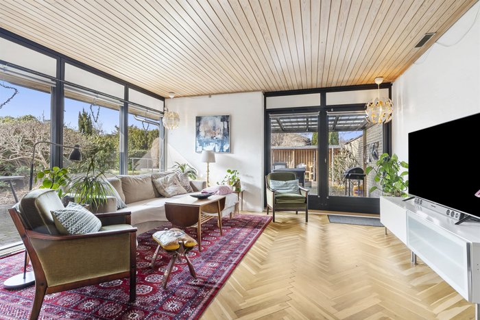 Opholdsrummene og værelserne fremstår smagfuldt indrettet med blandt andet smuk sildebensparket, og flot lysindfald, som giver boligen et elegant og tidløst udtryk.