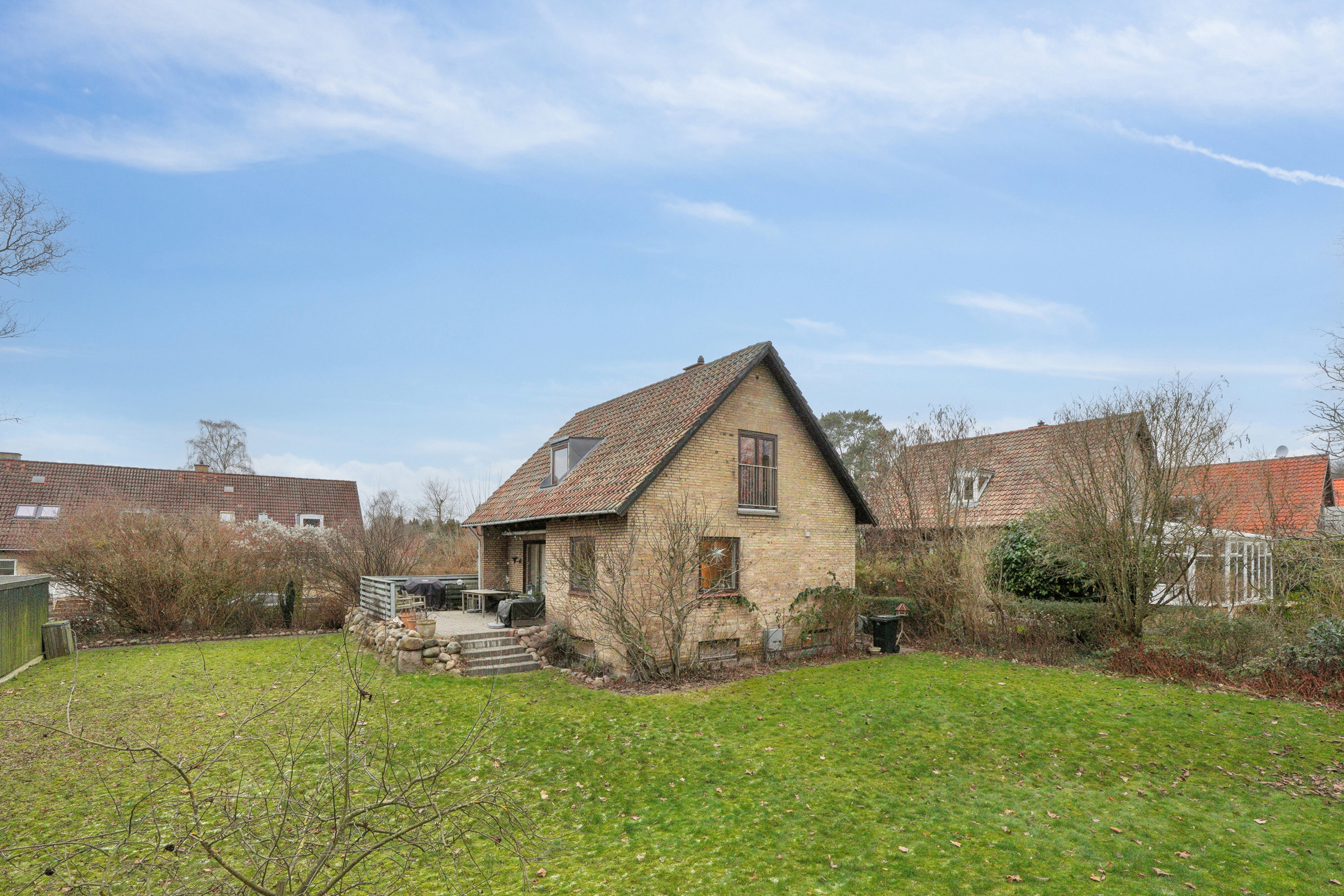 De store træer for enden af grunden giver haven en rolig og rar stemning, og her er plads til både leg, stille stunder og til at få fingrene i jorden i de eksisterende højbede. Den sydvendte terrasse ligger i direkte forlængelse af stuen og indbyder til udeliv fra morgen til aften.