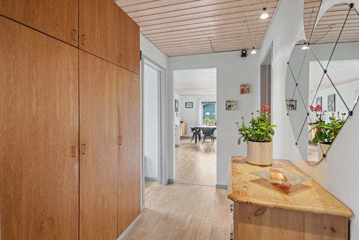 Husets entre er rummelig og giver adgang til gæste toilet samt fordeler gang til resten af huset.
