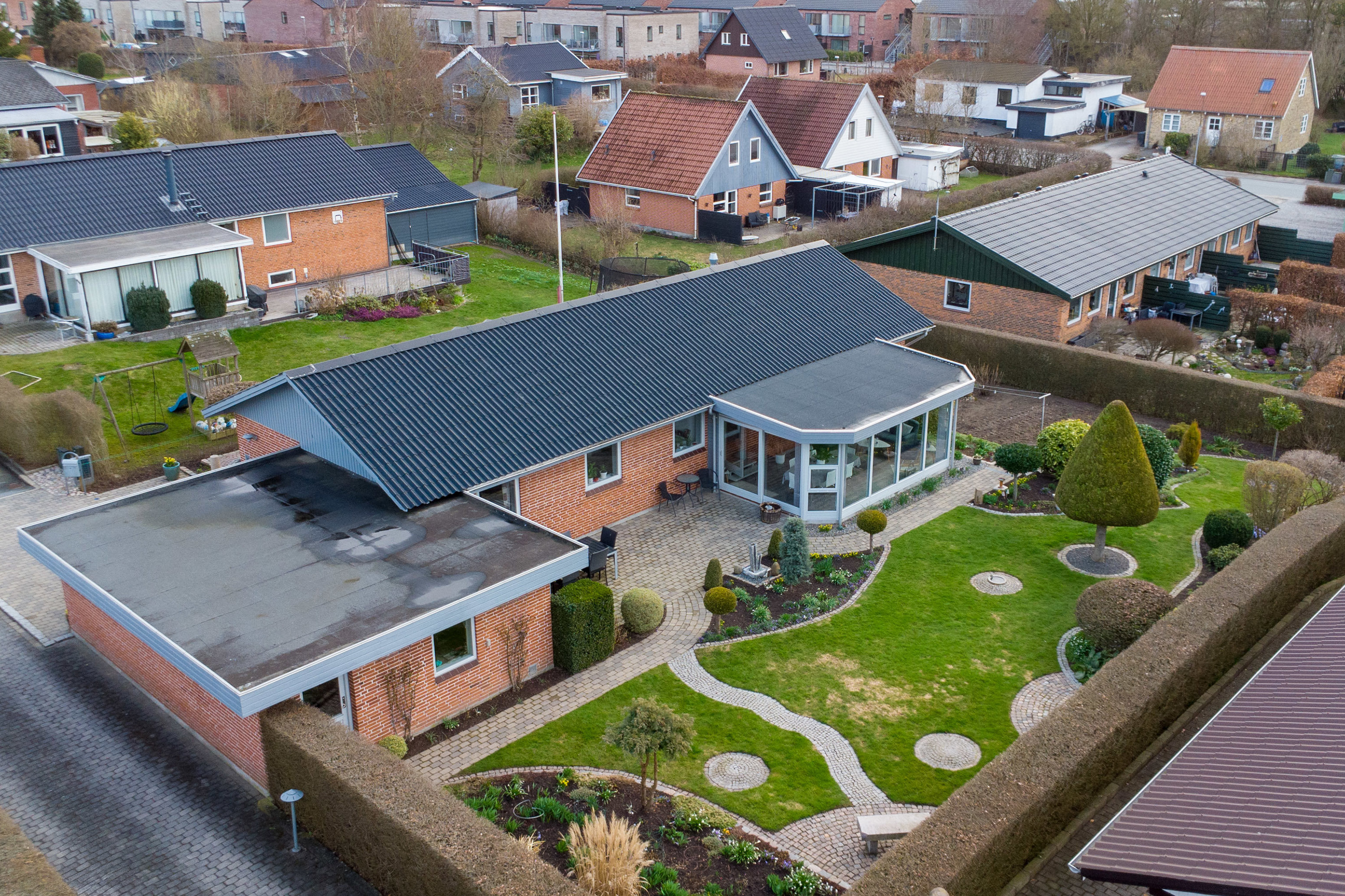 Hermed præsenteres en skøn familie villa med arkitektonisk have på hele 210 etage m2 + 48m2 god garage samt en virkelig lækker helårs udestue på 23m2 med god beliggenhed for den kræsne familie, der ønsker bynær tilgang, let til skole og indkøb samt en tryg hverdag for familien.