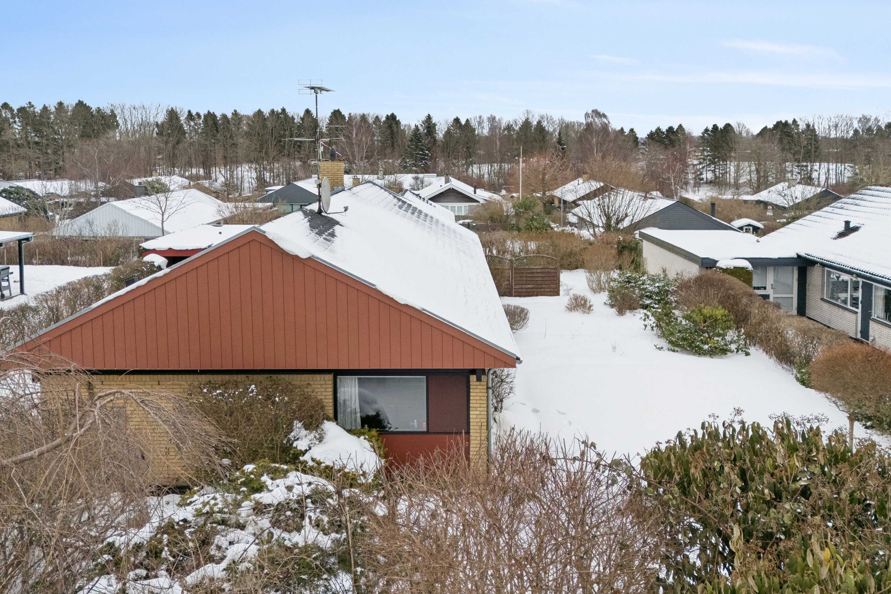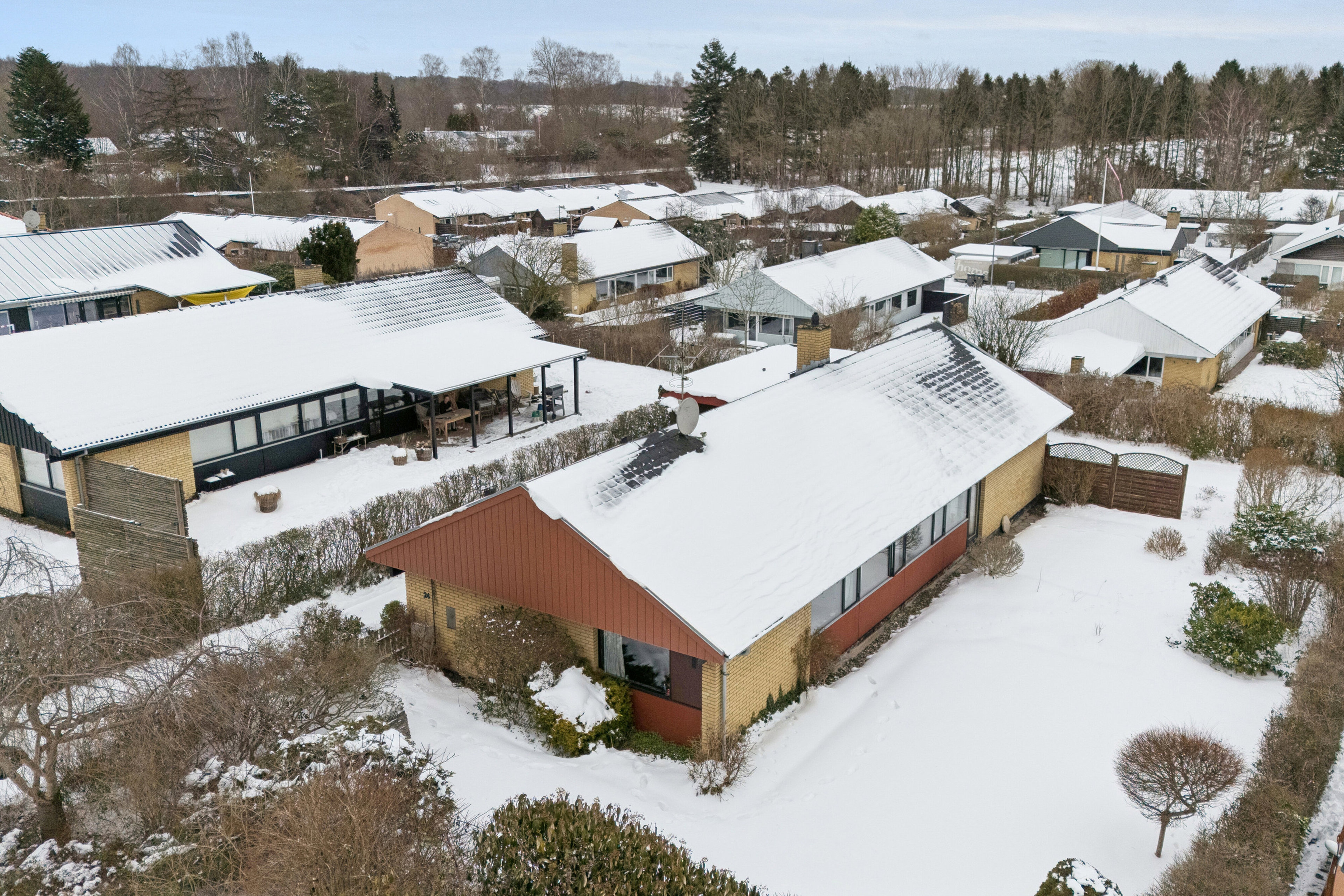 Villaen er bygget på en 759 kvm stor grund, og ejendommen omfatter også en carport, der er bygget sammen med et praktisk skur til haveredskaber eller hobby. I kommer nemt fra skur og carport til haven, da der er direkte adgang til den sydvendte terrasse og haven, der er helt ugeneret. Her kan I bare være jer selv.