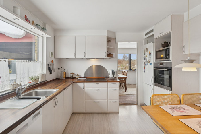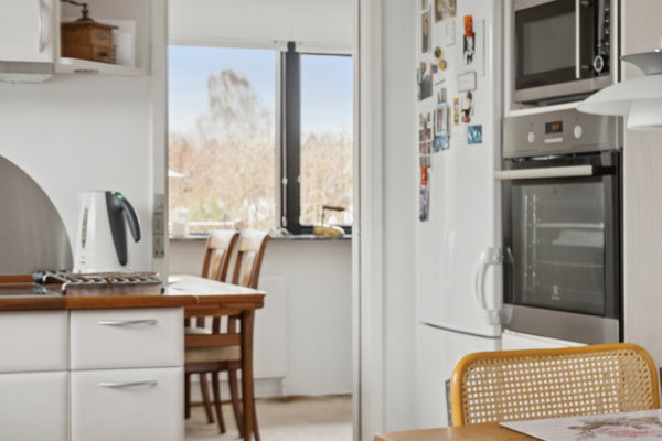 I villaens store vinkelstue, hvor der er vinduespartier ud mod både haven og den hyggelige, sydvendte terrasse, kan I samle både familie og venner. Til hverdag kan familien snildt samles både morgen, middag og aften ved spisepladsen i det lyse og rummelige køkken.