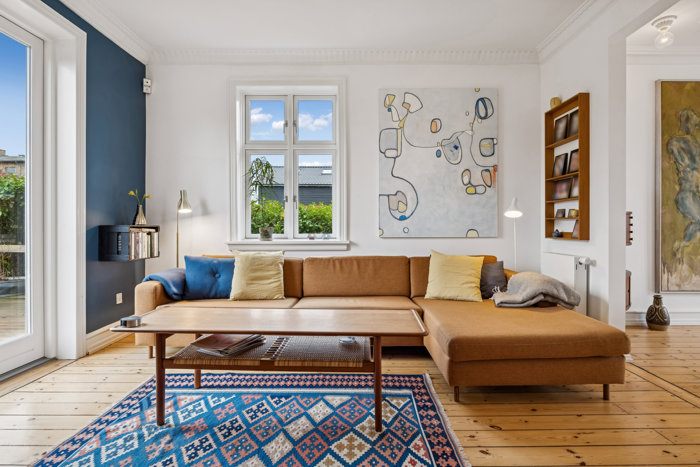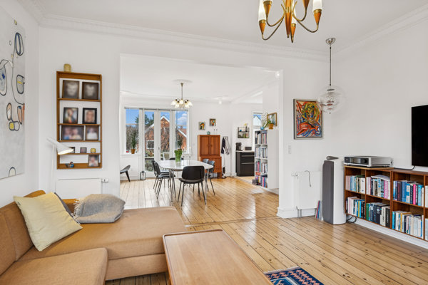 Indenfor folder boligen sig ud med en planløsning, der intuitivt forstår balancen mellem fællesskab og fordybelse. Stueetagen byder på et veludstyret lækkert kvalitetskøkken fra Multiform med mange fine detaljer, herunder quooker. To stuer i åben forbindelse, begge med udgange til terrasser og haven og med smukke stuklofter med lysrosetter i hjørnerne i spisestuen. Dejlig værelse som er oplagt til kontor eller gælsteværelse. Plankegulve og de smukke stuklofter sætter scenen for herskabelig tyngde, mens de moderne løsninger bidrager til en skøn forening mellem dengang og nu.
