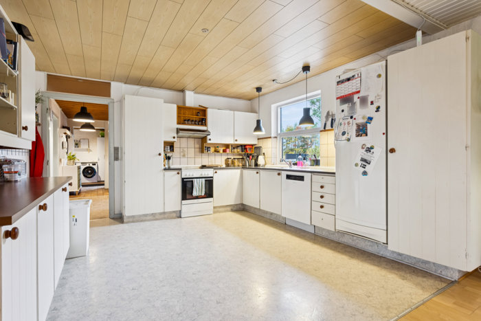 Boligen er opført i 1964 og byder på hele 217 m² fordelt på ét plan med syv værelser. Her er plads til den store familie, flere generationer under samme tag – eller til dig, der ønsker hjemmekontor, hobbyrum eller gæsteværelser.