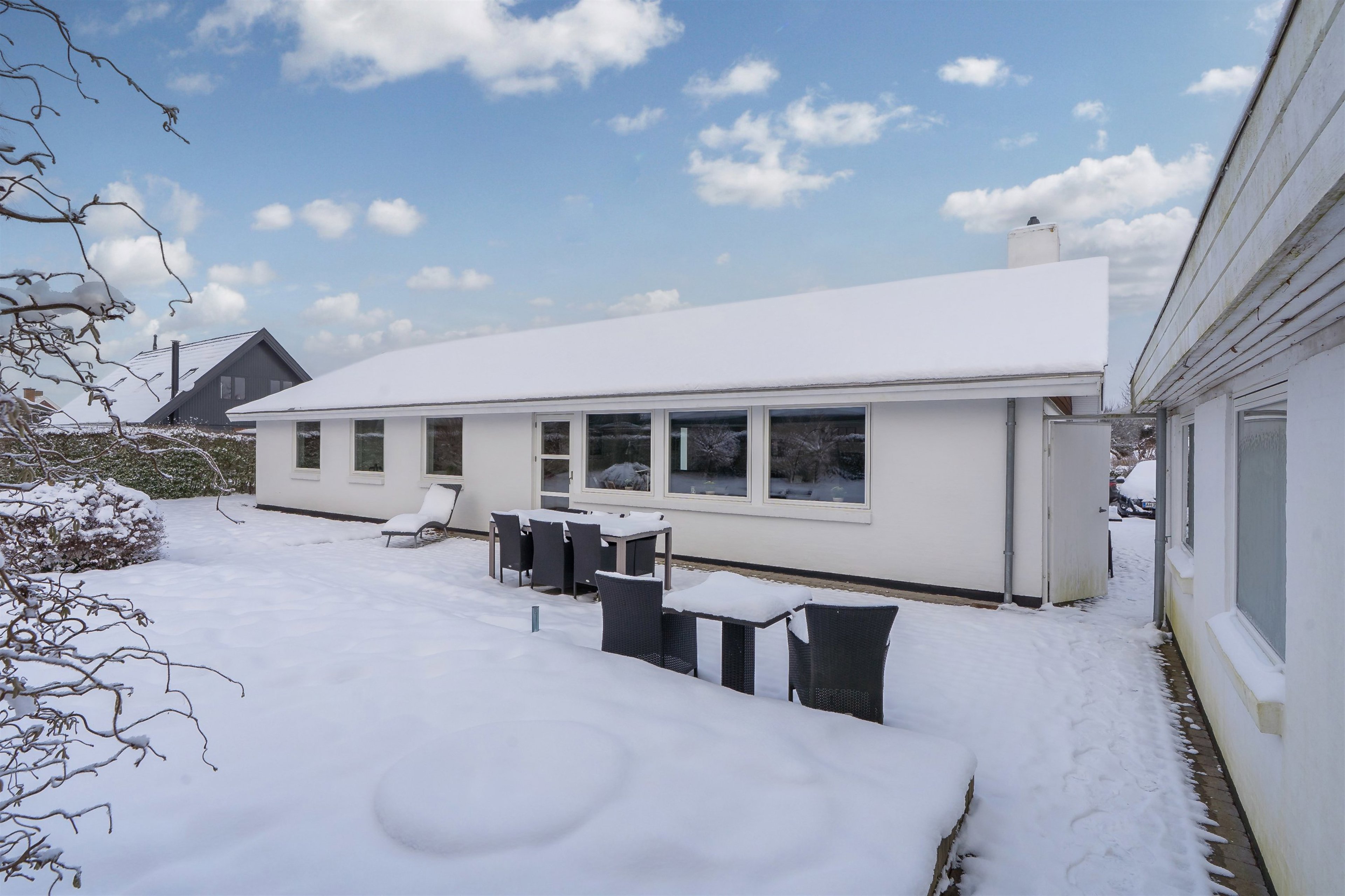 Udenfor venter en lukket og overskuelig have, hvor børnene trygt kan lege, og hvor sommerens måltider kan nydes på terrassen. Hertil kommer garage og et disponibelt rum, som giver ekstra plads til "gæsteværelse",hobby eller cykler.