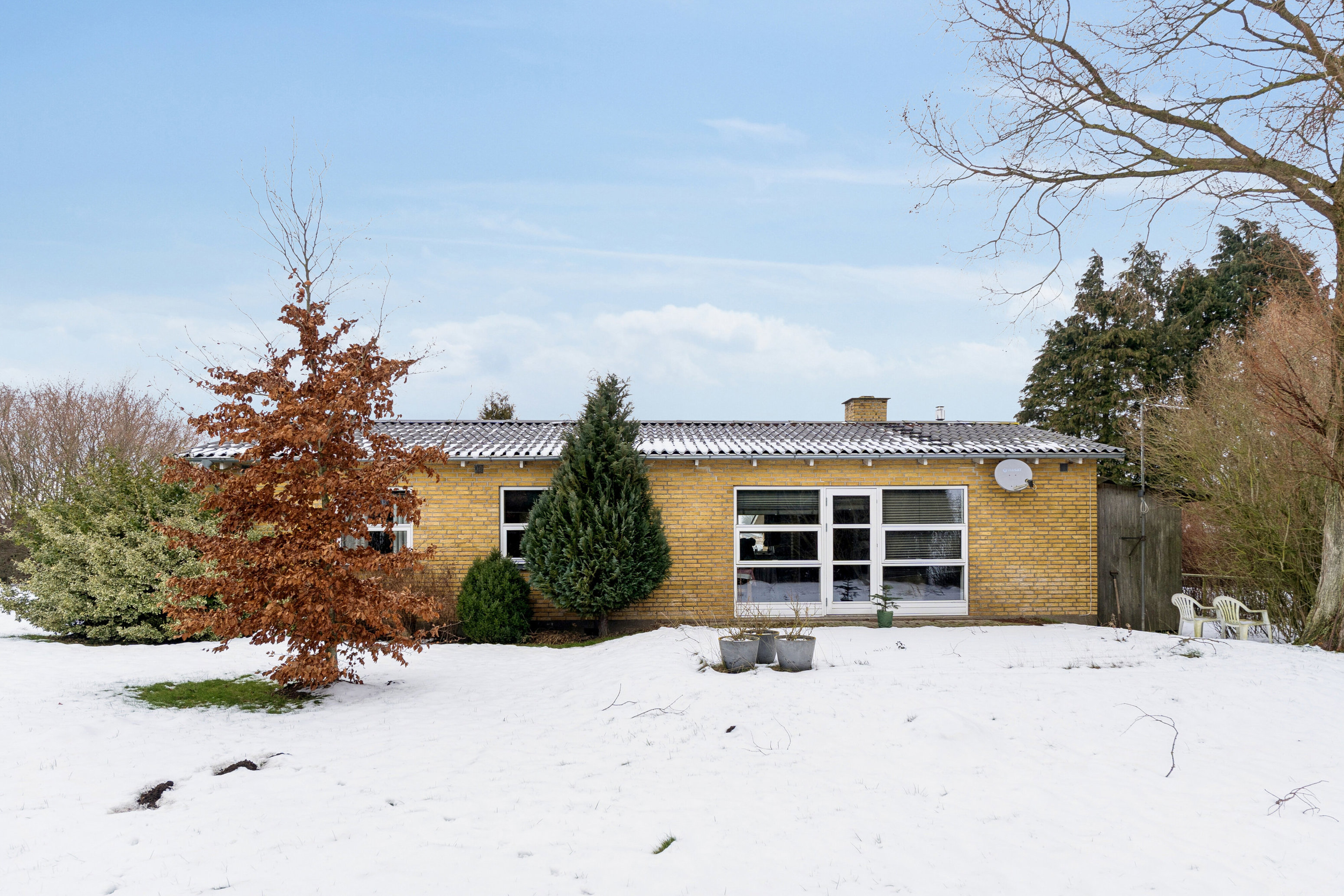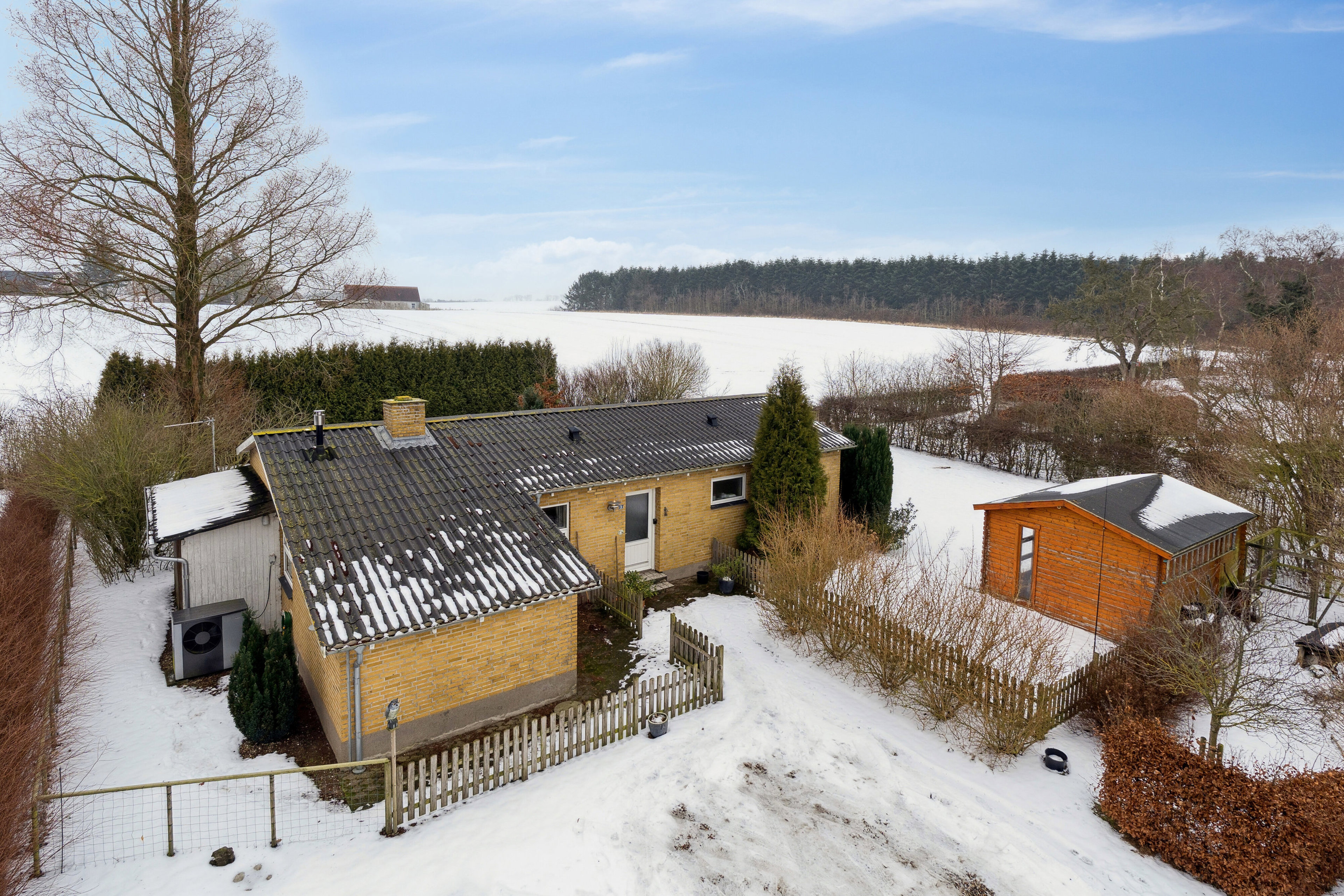 Køkken-alrummet er samlingspunktet i hjemmet, hvor madlavning, latter og samtaler smelter sammen. Dagtimerne fyldes af himlens vekslende farver udenfor, mens aftener kan nydes på den sydvestvendte terrasse, hvor solnedgangen lægger et varmt skær over både have og det åbne landskab. Villaens gennemtænkte planløsning gør, at du får et hjem, hvor hver detalje er placeret med omtanke – fra de tre indretningsvenlige værelser til det funktionelle bryggers med separat indgang, der gør det let at træde ind og ud, uanset om du har været på gåtur i det fri eller blot skal ordne hverdagens rutiner.