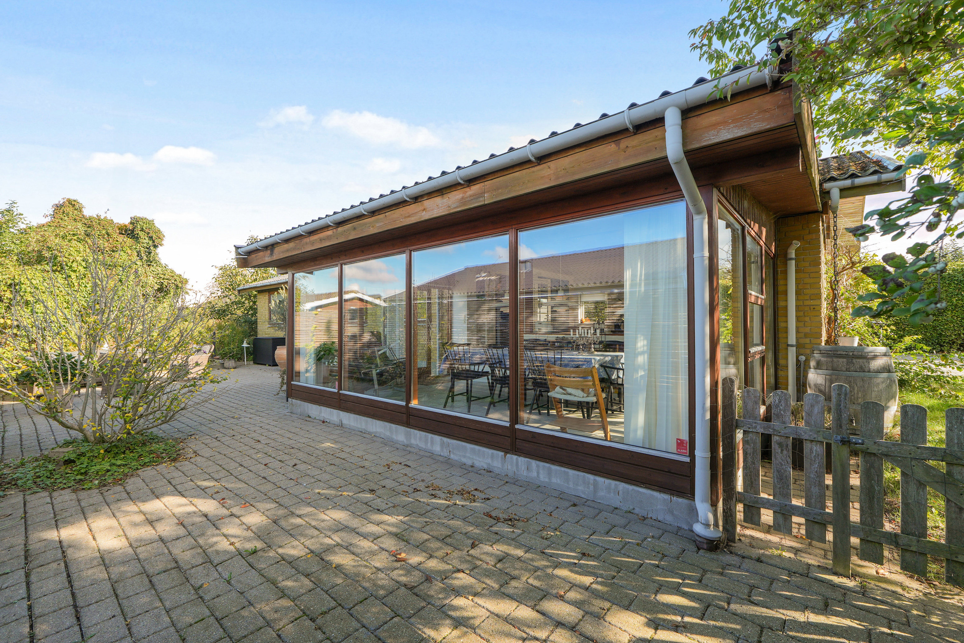 Boligarealet lyder på 165 m2 og byder på fire gode værelser, hvoraf det ene kan fungere som bonusstue eller kontor. Ikke mindst er også udvalget af vådrum helt på plads, så I får både bryggers, gæstetoilet og et pænt, indbydende badeværelse. Endelig er der naturligvis bonusstuen, som minder om en udestue og ikke bare fremstår i boligkvalitet, men er decideret godkendt til beboelse. Dermed har I en lækker og ret unik afdeling, hvor I kommer tæt på haven hele året rundt.