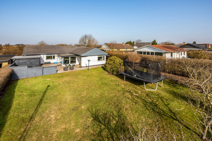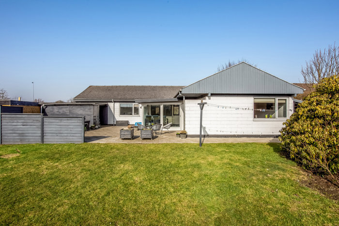 Udendørs har villaen på en dejlig stor solrig terrasse samt en have med plads til sommerens grillaftener, legeaktiviteter og afslapning – her er der god plads til hele familien.