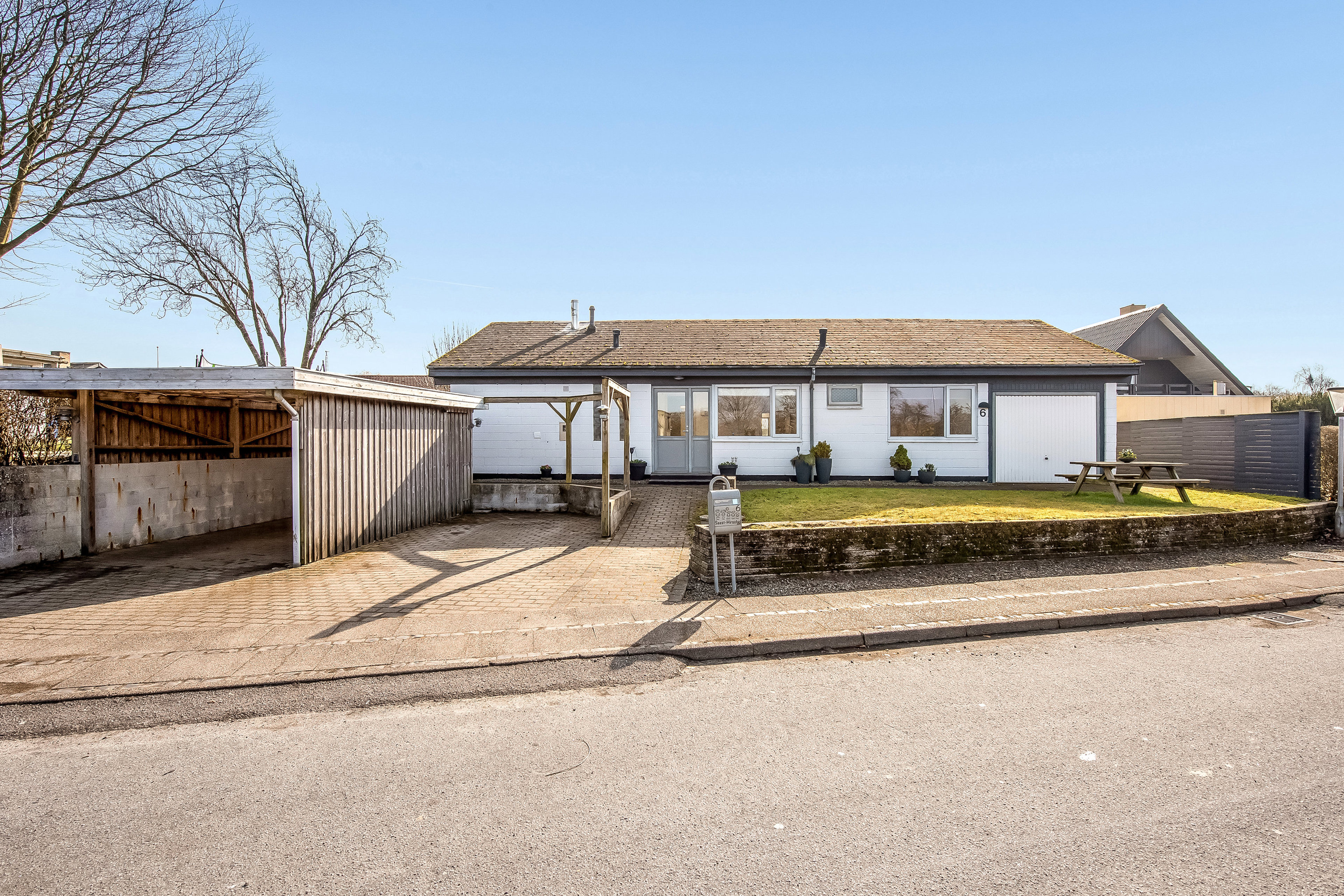Integreret garage ligger i forlængelse af villaen og der er tillige carportanlæg.
