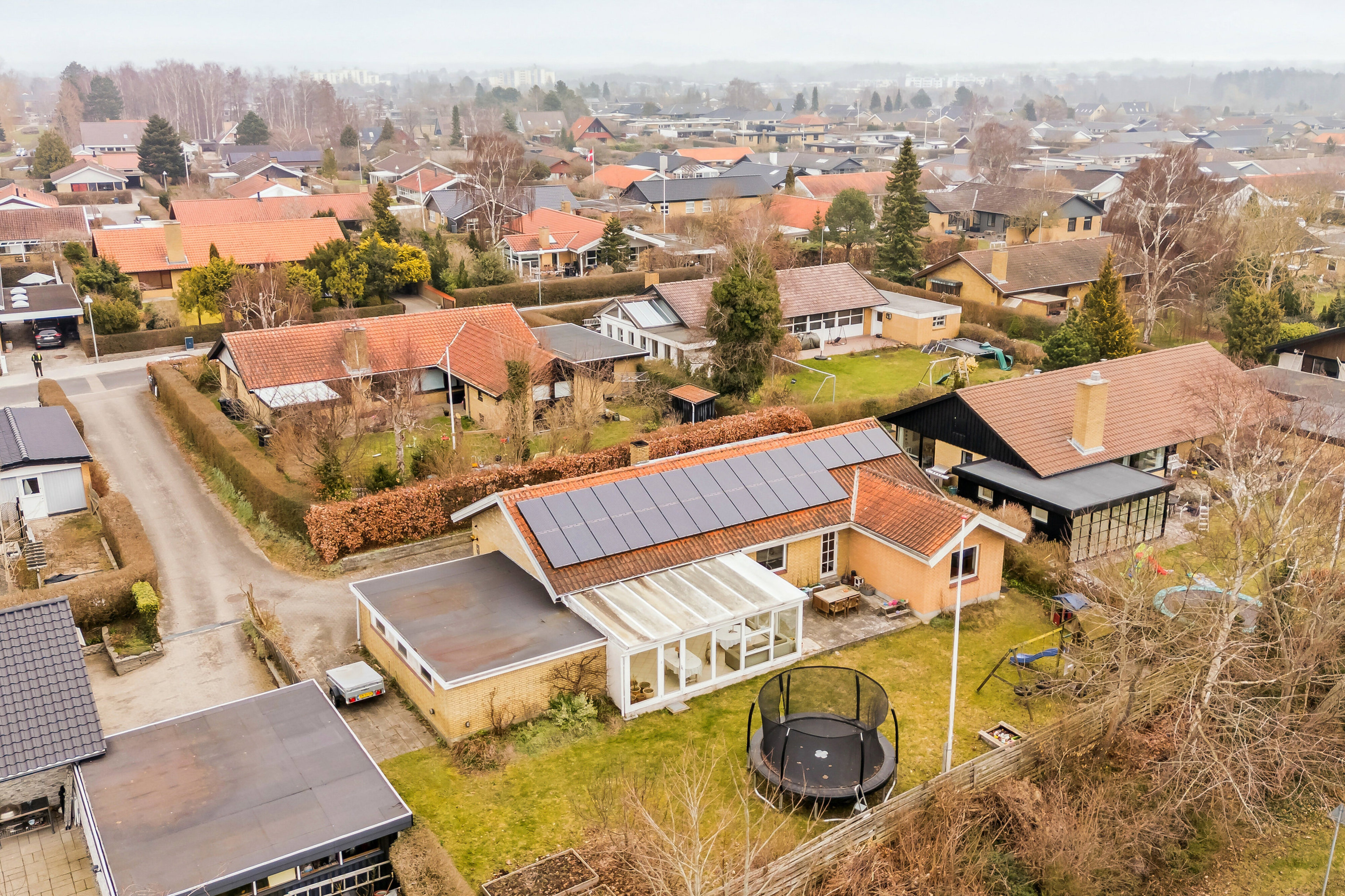 For enden af en blind vej ligger denne fine etplansvilla, som rummer 148 kvm og passer godt til børnefamilien. Planløsningen fordeler sig over fire værelser, et gæstetoilet, et badeværelse, et køkken og en stor stue, mens I også kan se frem til en udestue, en dejlig grund på 902 kvm og en muret garage i forbindelse med huset.