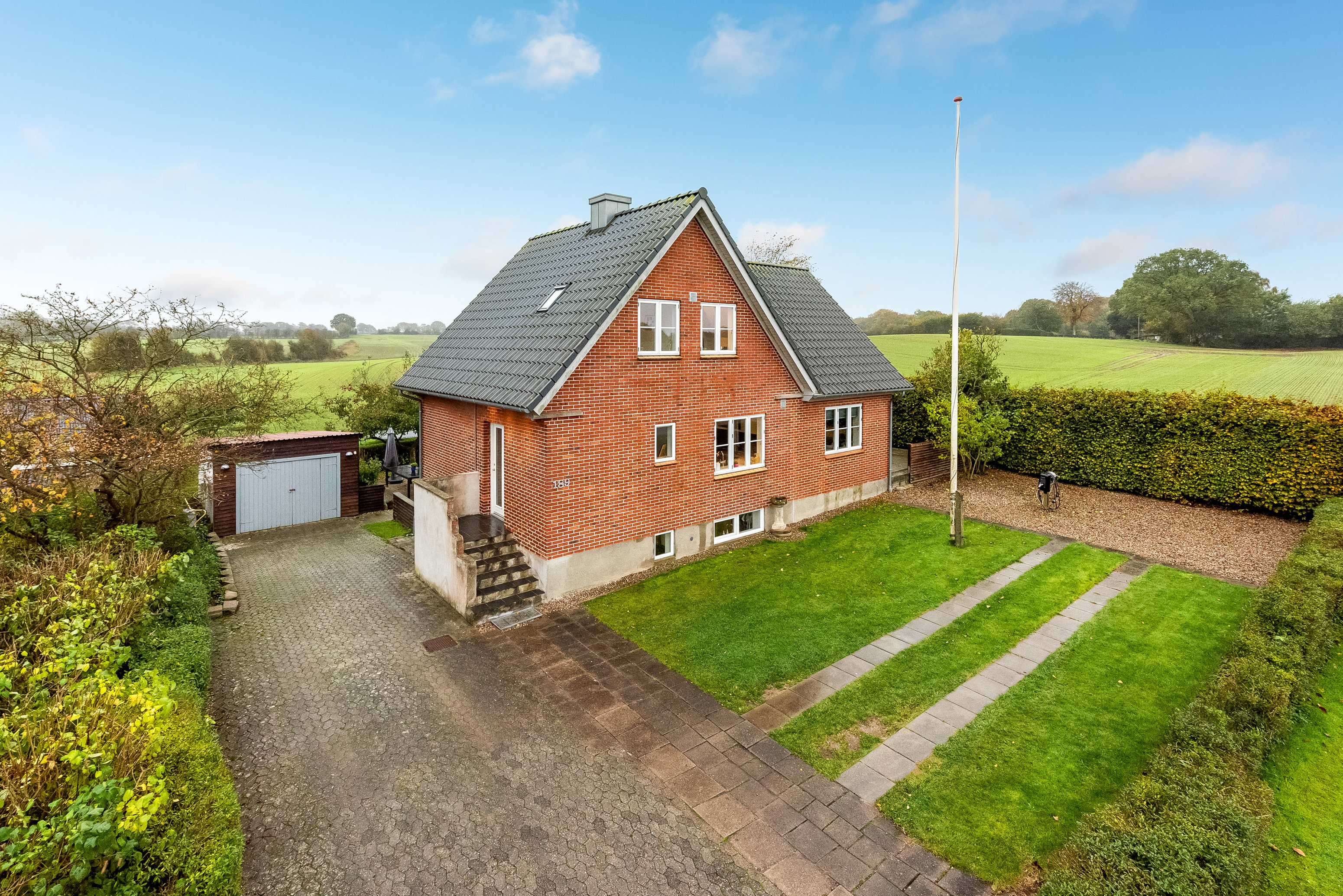 rolige aftener under åben himmel, mens børnene leger frit i haven. På ejendommen findes også garage,