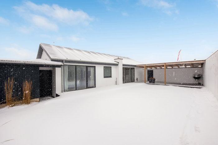 I forlængelse af boligen findes et praktisk skur, som giver ekstra opbevaringsplads til haveredskaber, cykler eller hobbyudstyr. Haven er overskuelig og privat med god plads til både leg, afslapning og udeliv, og den overdækkede terrasse giver mulighed for at forlænge udesæsonen betydeligt.