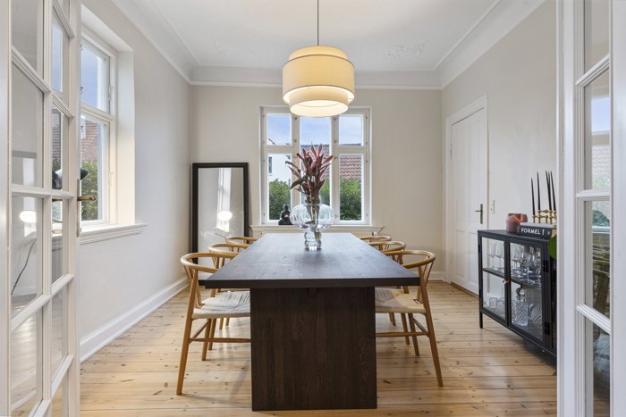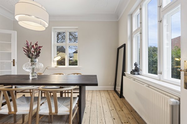 På førstesalen finder du fire lyse og indretningsvenlige værelser samt en rummelig repos med mange anvendelsesmuligheder. Her er der rig mulighed for at tilpasse indretningen efter familiens behov.