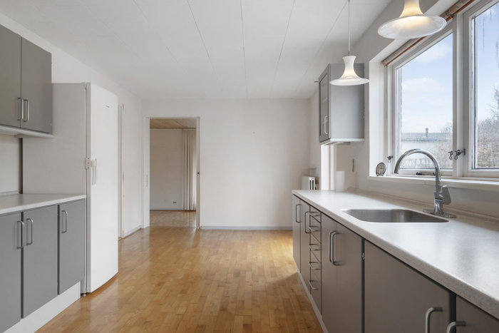 Køkkenet er funktionelt indrettet og har spiseplads, så hverdagens måltider nemt kan samles her.