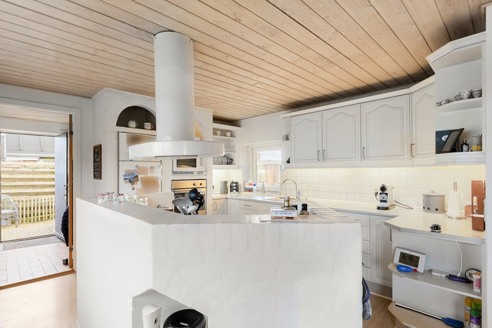 Køkken og opholdsrum ligger i naturlig forbindelse med hinanden, hvilket skaber et centralt samlingspunkt i hjemmet. Boligen rummer flere værelser, opdelt i en forældre- og børneafdeling. Forældresoveværelset har eget badeværelset og fordelergangen giver adgang til både børneværelser og gæstebadeværelset.