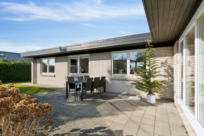 I kan se frem til en dejlig grund med græsplæne til leg og to gode terrasser. Haven er pæn og velpasset og anlagt således, at den kun kræver et minimum af pasning.